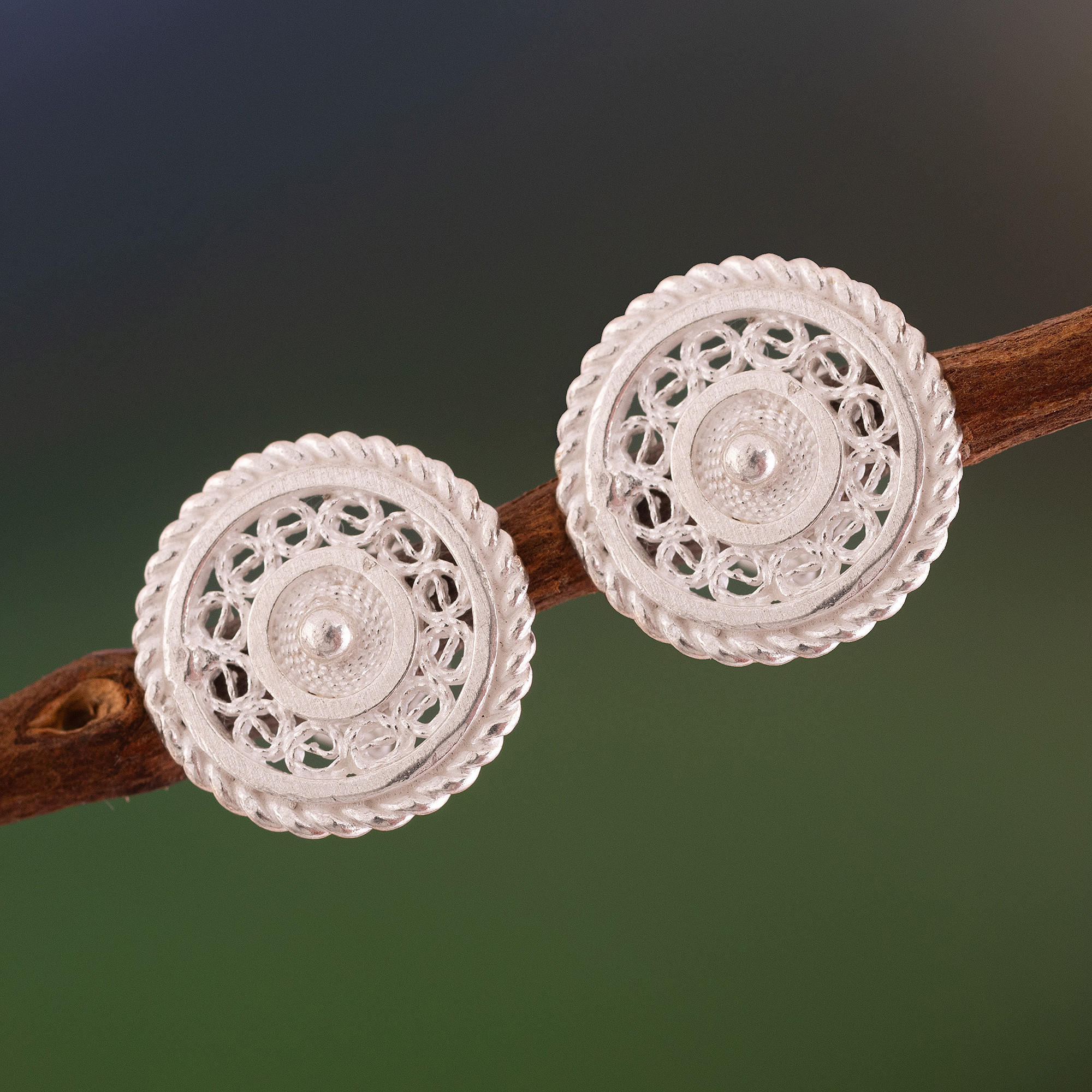 Giuliana Valz-Gen creates circles within circles from luminous sterling silver. Exquisitely handcrafted in the style of Catacaos, these earrings showcase the Andean art of filigree.