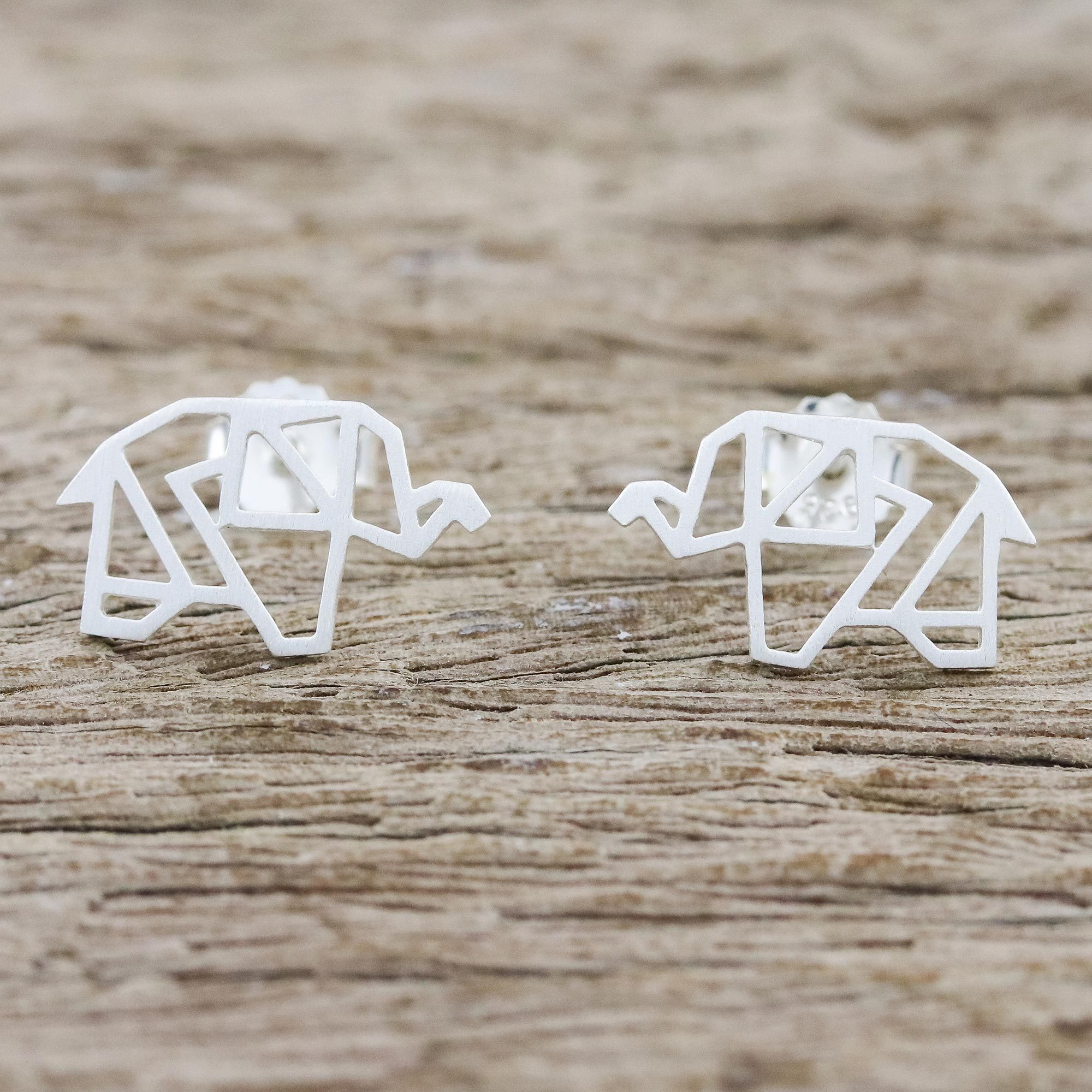Resembling origami with its crisply folded lines, these button earrings are formed of sterling silver into angular elephants. Jantana of Thailand designs the earrings and gives them her trademark brushed satin finish.