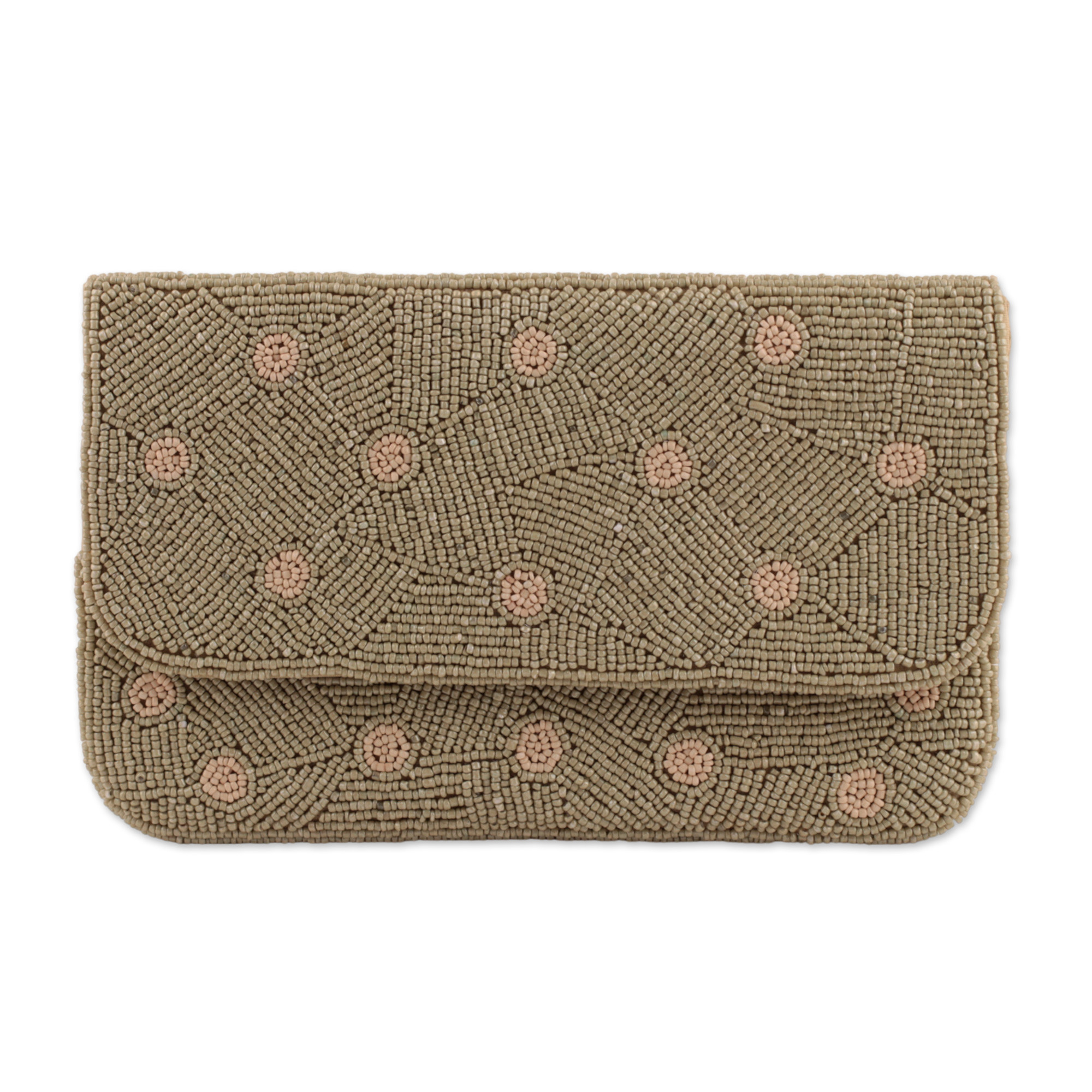 Embellished Glass Beaded Dot Clutch in Green and Ivory Hues, 'Green Constellation'