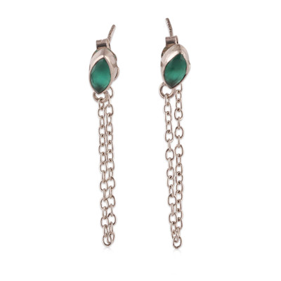 Emerald Sterling Silver Dangle Earrings with Hanging Chains, 'Flowing Green'