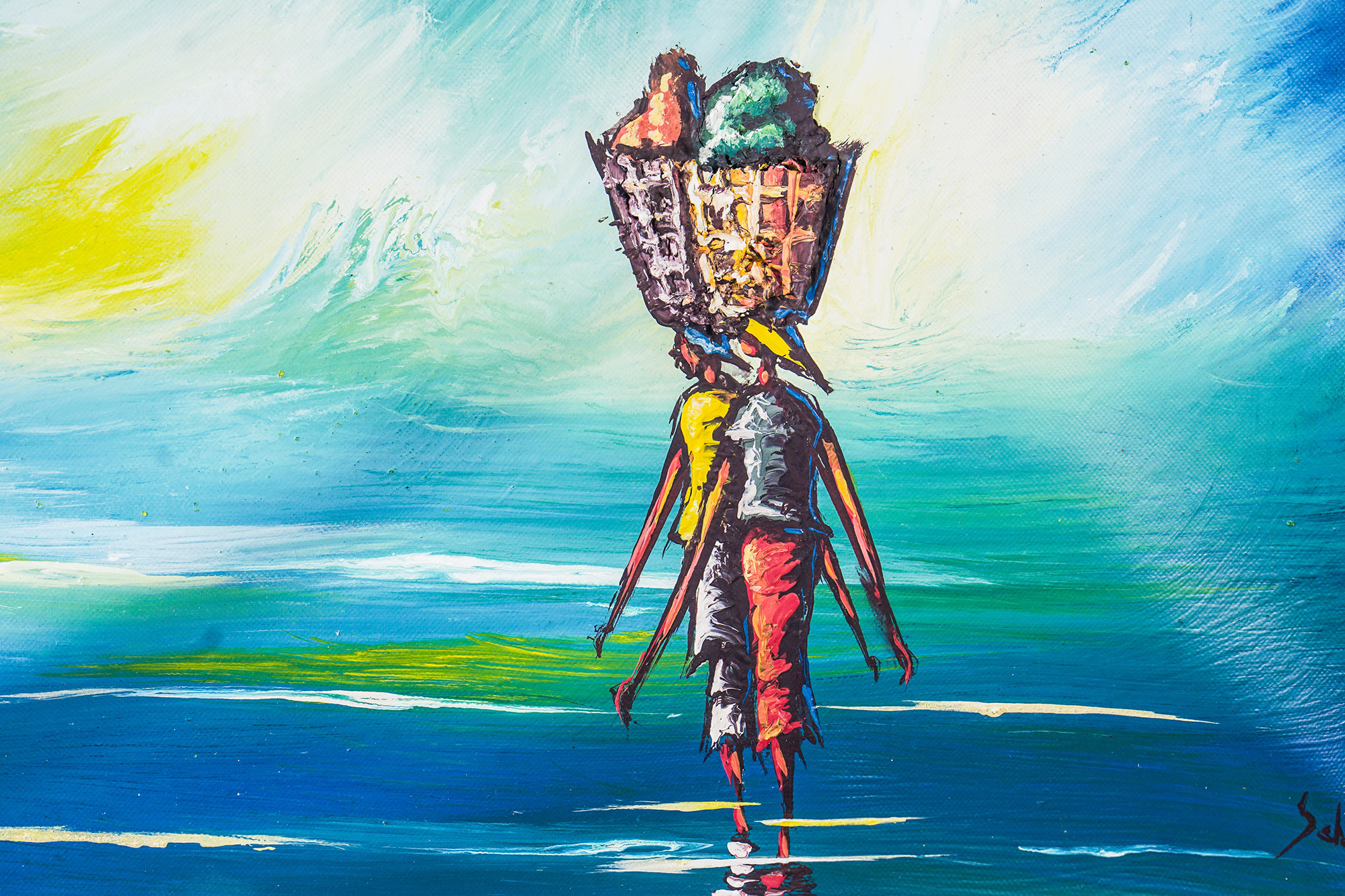 "My inspiration is derived from my environment and the continent around me – the nature of Africa. I paint mainly with... oil and acrylic on canvas, using both brush and palette knife. My style of painting ranges from realistic to semi-abstract and my work is characterized by bright and bold colors. Most of my paintings are landscapes, seascapes, market scenes and figure paintings. The themes of my works are directly linked with the culture of Africans and the events that take place in our everyday life, for example the way women carry children on their backs and heavy loads on their heads. I depict the behavior of African children in the community as well.