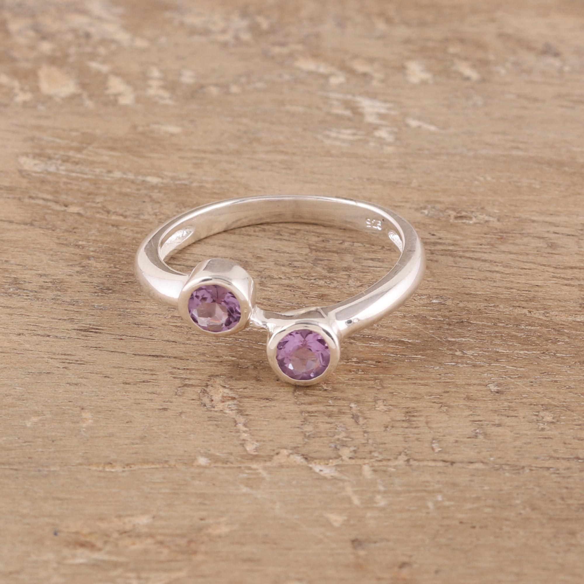 Amethysts glow with scintillating energy in the modern design of this ring from Alok Jain in India. Local artisans craft the ring from high-polish sterling silver