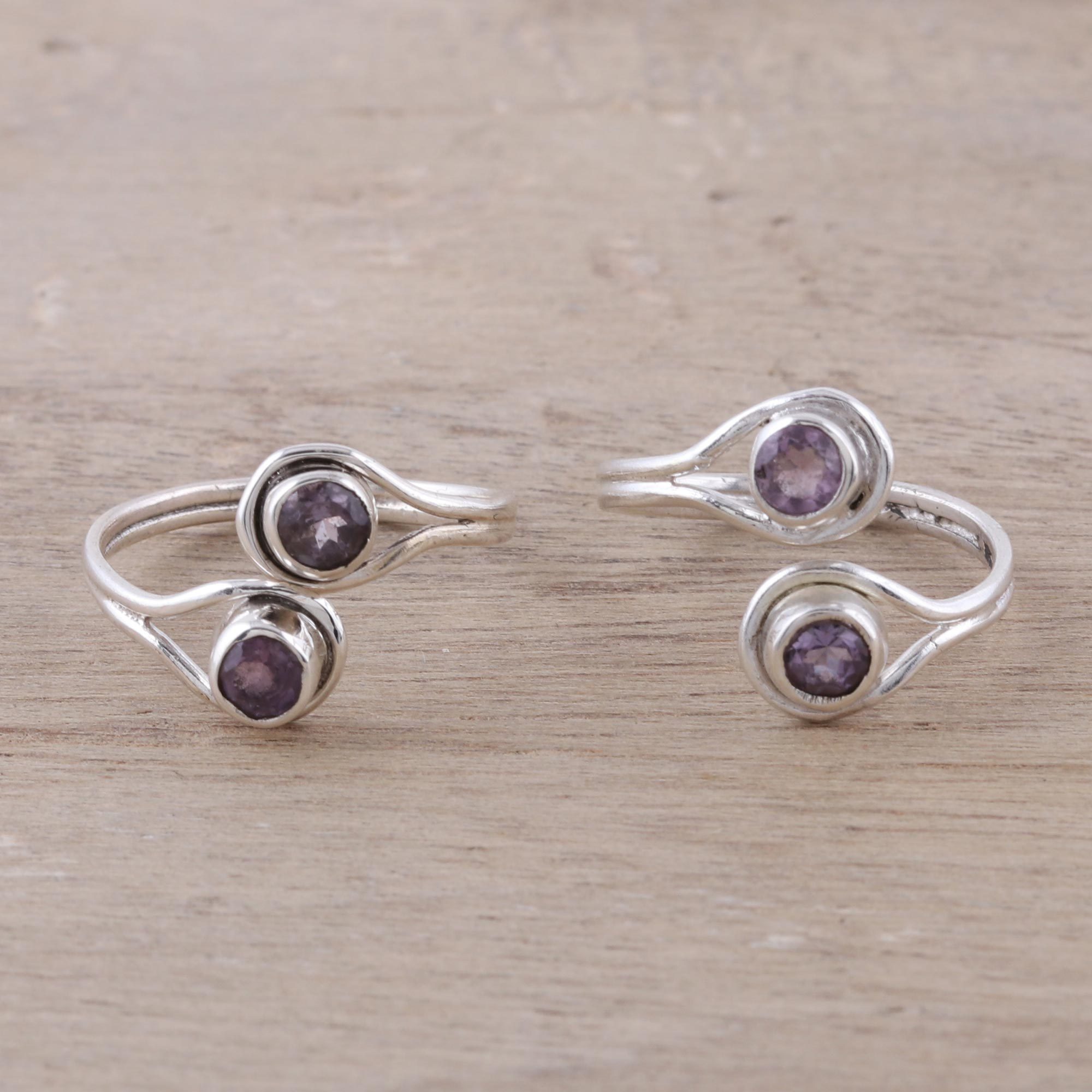 For a lovely and trendy addition to your wardrobe, India's Alok Jain presents this pair of toe rings. Indian artisans handcraft each wrap of sterling silver, completed at each end with a sparkling amethyst gem.