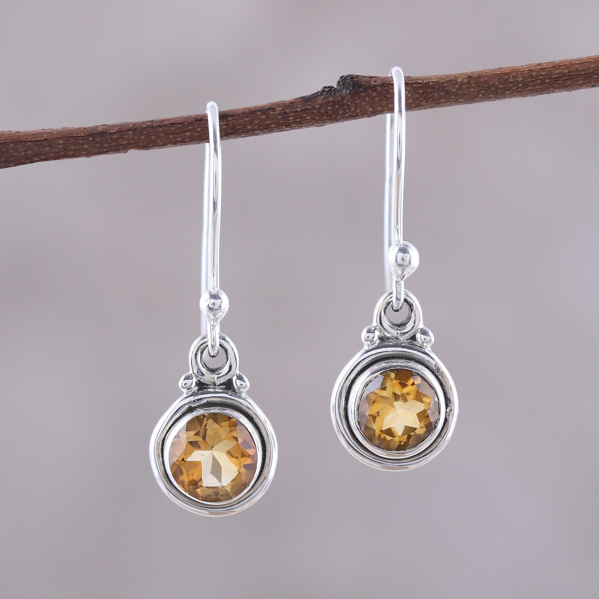 Faceted Citrine Dangle Earrings from India, 'Glistening Circles'