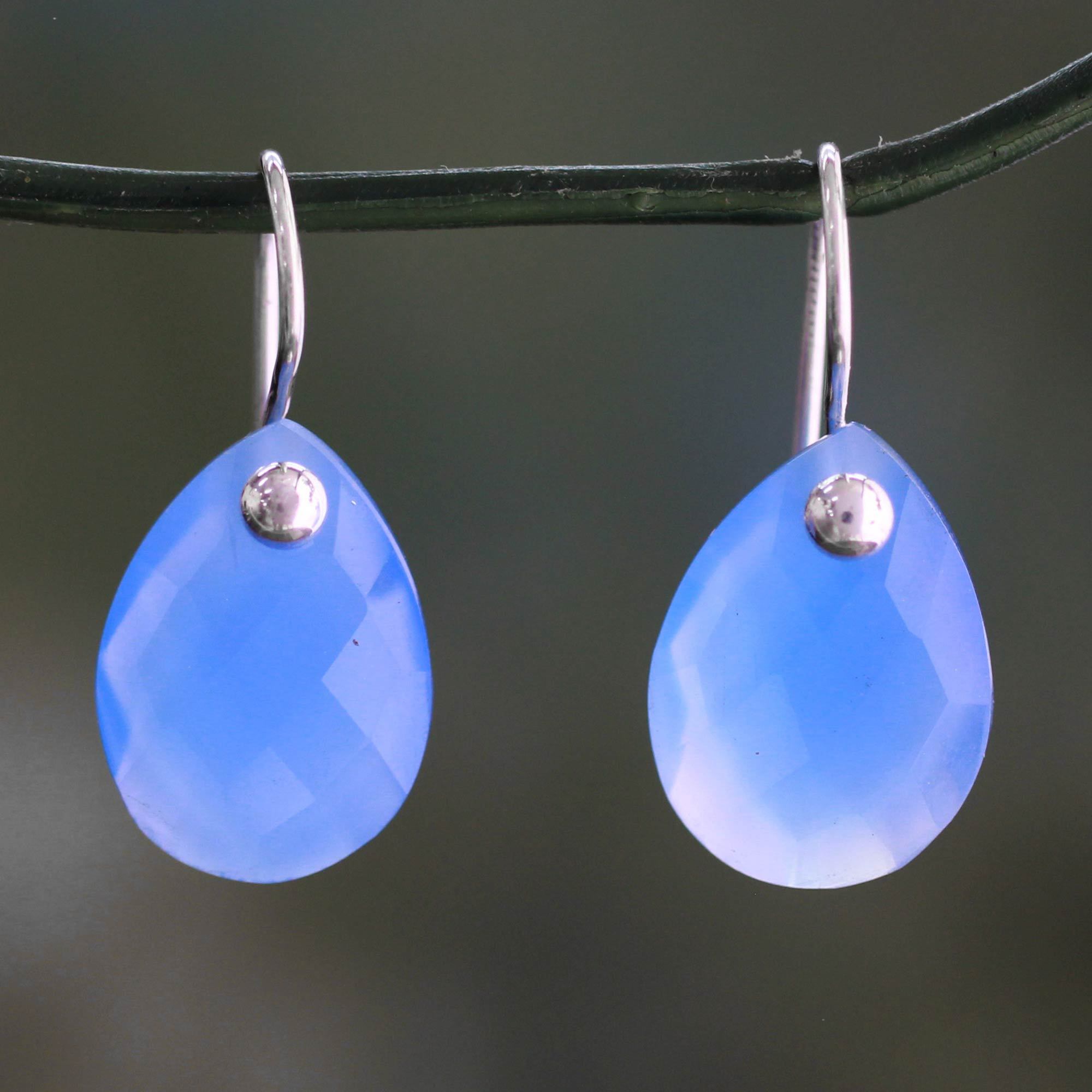 Faceted Sky Blue Chalcedony Earrings from India, 'Halcyon Days'
