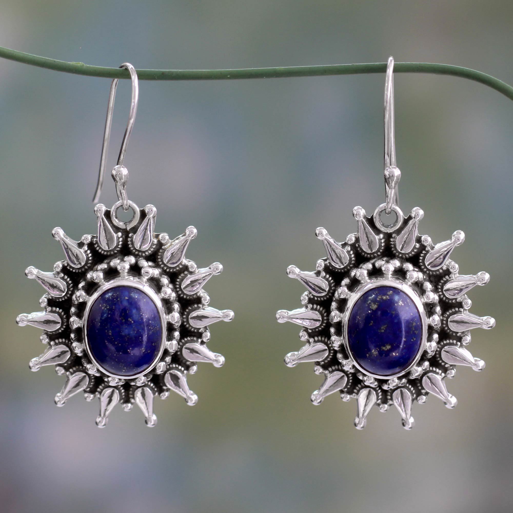 Fair Trade Lapis Lazuli and Sterling Dangle Earrings, 'Royal Allure'