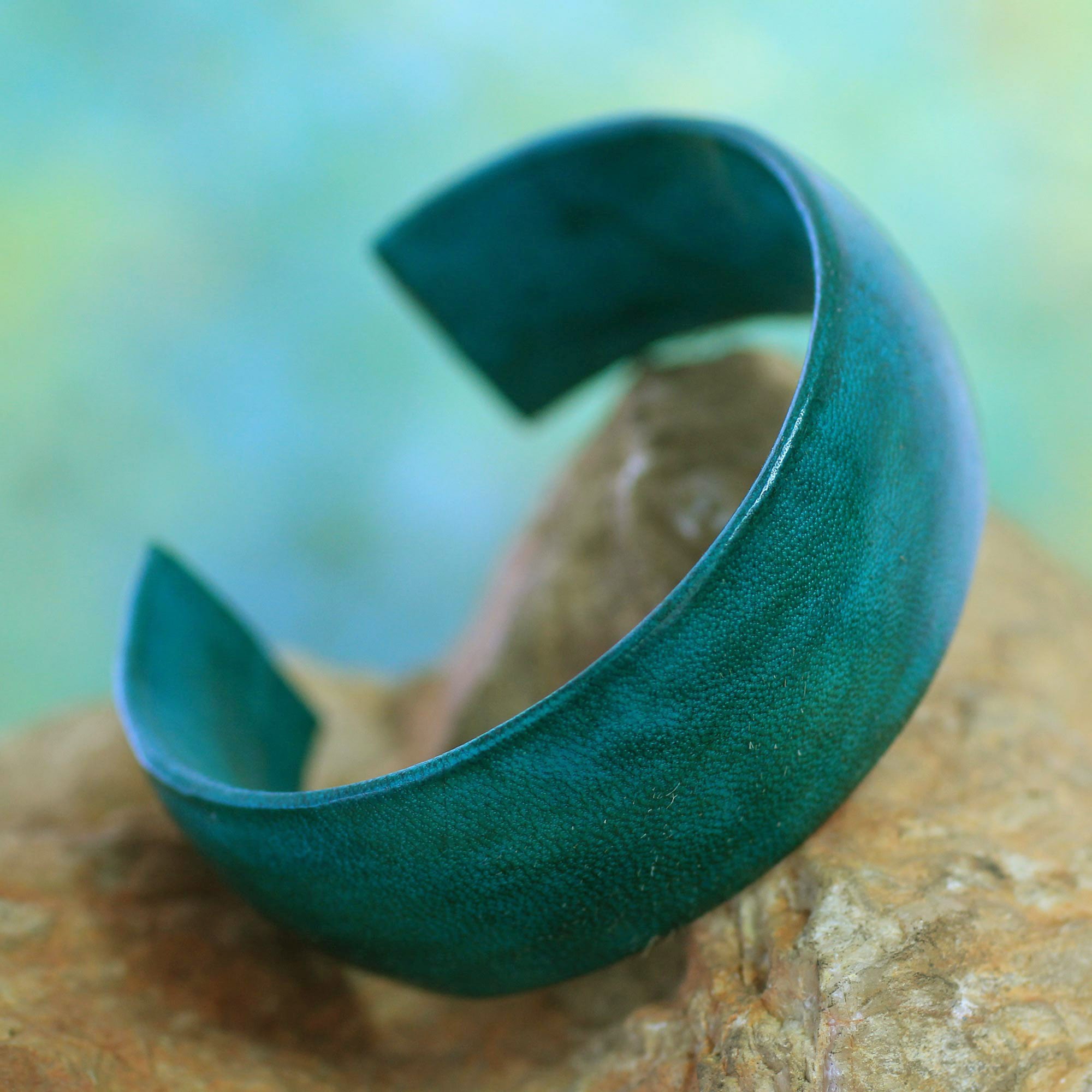 Fair Trade Leather Cuff Bracelet, 'Annula in Sea Green'