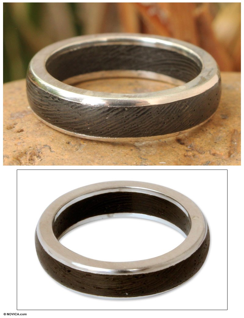 Polished sterling silver creates a worthy frame for lustrous Indian elm wood in this exotic gentleman's band ring. Handcrafted by Sarote Lochotinunt from Thailand, the rich grain of the wood makes it a worthy gem. Streamlined and elegant, this masculine ring is a tasteful accent for the well-dressed man.