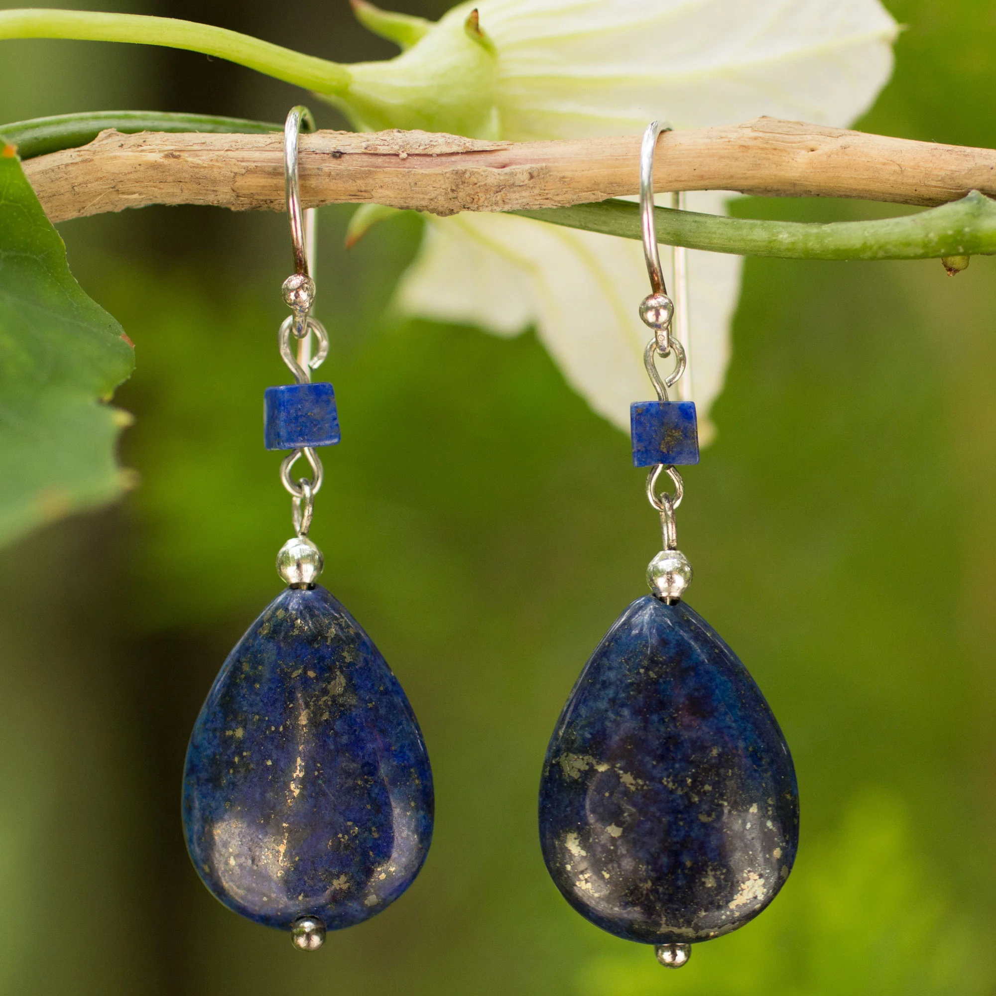 Fair Trade Sterling and Lapis Lazuli Dangle Earrings, 'Deep Blue Sea'
