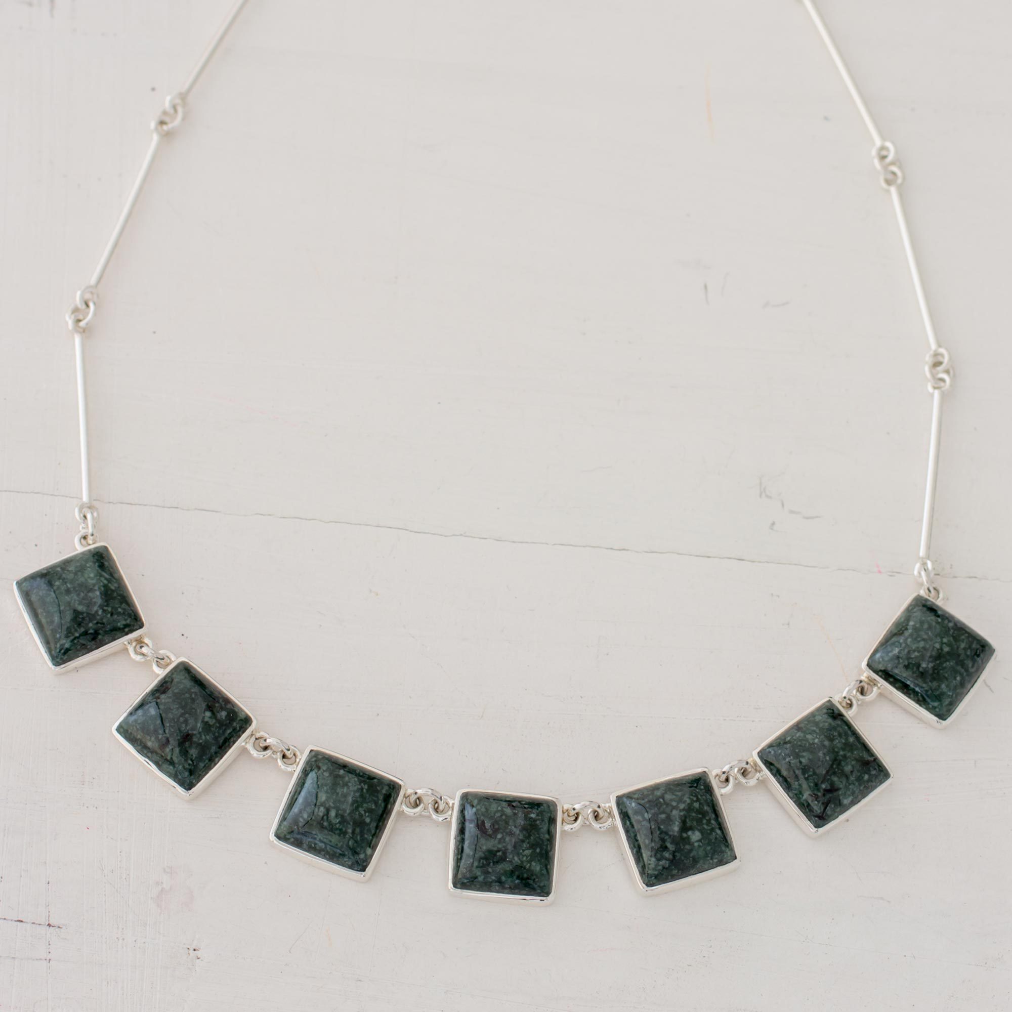 To the Aztec and the Maya, jade is of more value than gold. To Guatemala's Jiménez Family, jade is a never ending source of inspiration. The elegant design of this necklace is crafted by hand with sterling silver and jade, historically used to attract love.