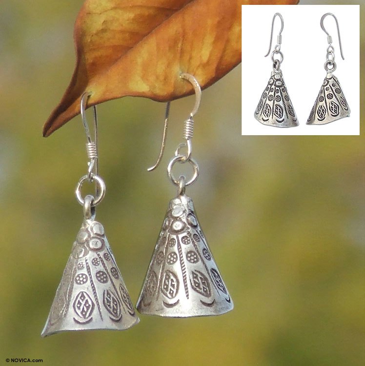These simple sterling silver dangle earrings are light and airy in design, and add sophistication to any look. Artist Sasithon Saisuk uses inspiration from Thailand's hill tribes in her beautiful handcrafted earring design. The beautiful and simple design make these earrings perfect for any occasion, and matches with practically every look.