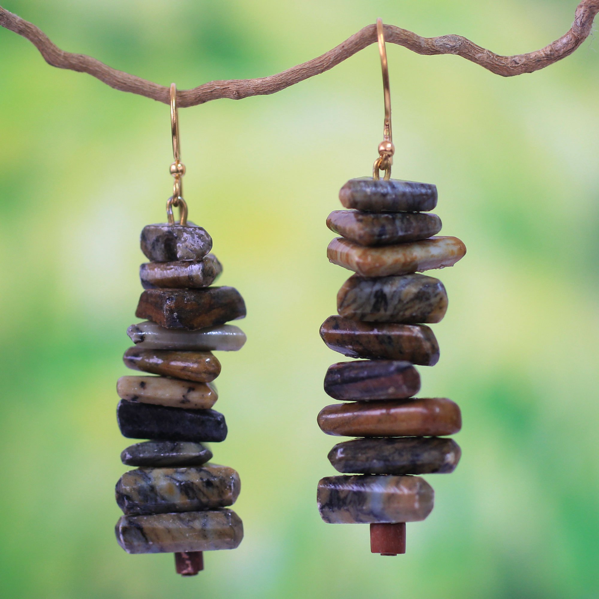 Anidaso is the Akan work for hope, a concept the artisan hopes to express in the design of these fascinating, dangle earrings. Rachel Armah of West Africa crafts chips of polished soapstone and lovely bauxite beads stacked on brass hooks to create this joyful pair. These unique earrings are uniquely lovely and beautifully natural.