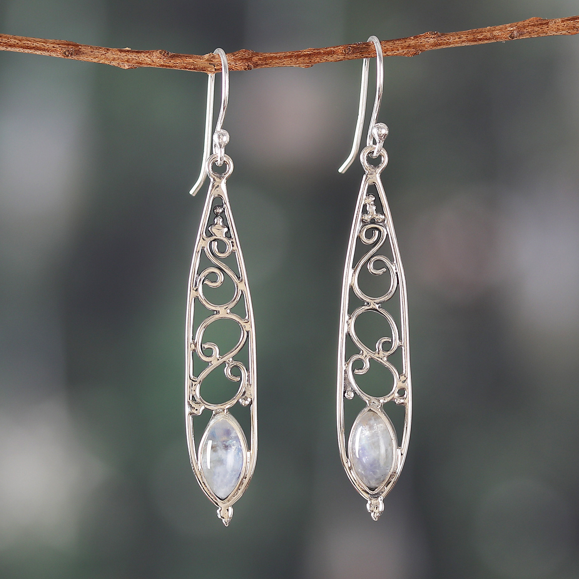 Fantasy-Inspired Natural Rainbow Moonstone Dangle Earrings, 'Moonlit Drop'