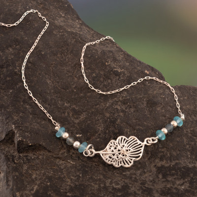 Fantasy Sea-Inspired Amazonite and Apatite Pendant Necklace, 'Marine Leaves'