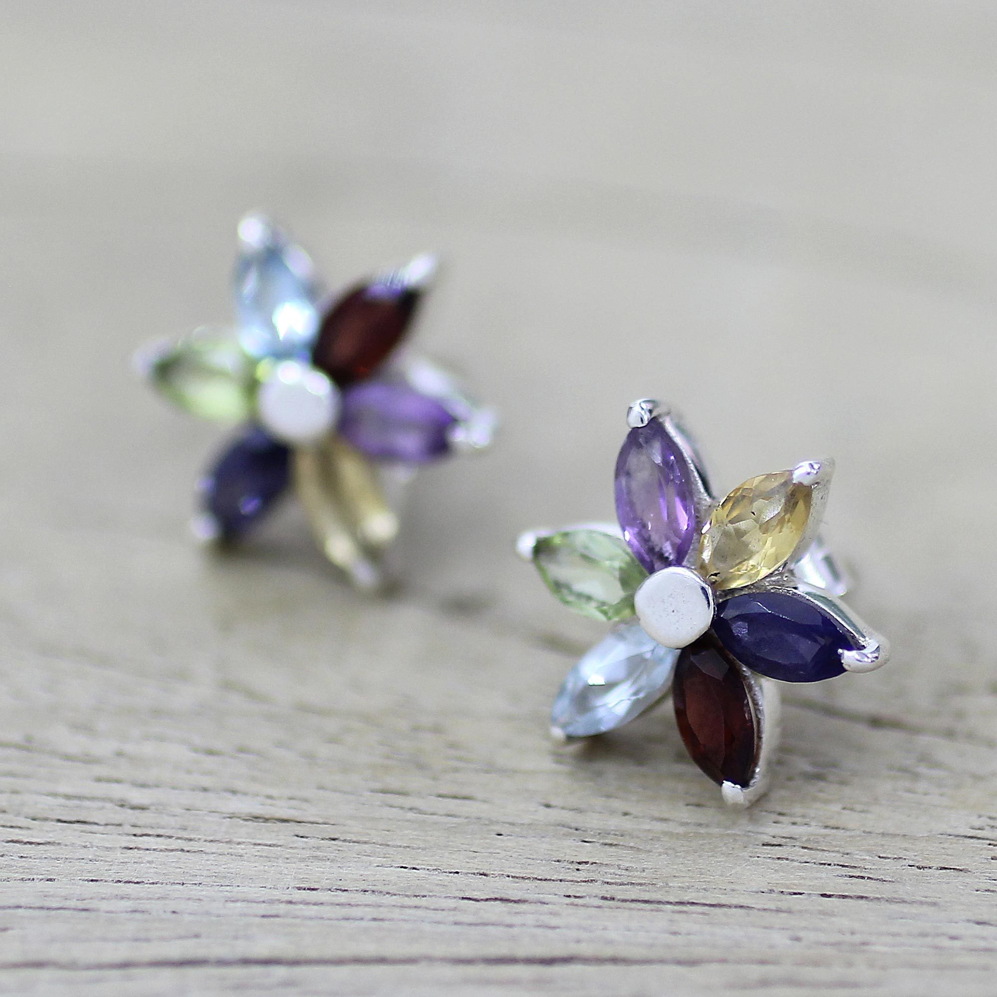 Floral Earrings in Sterling Silver and Natural Gemstones, 'Paradise in Bloom'