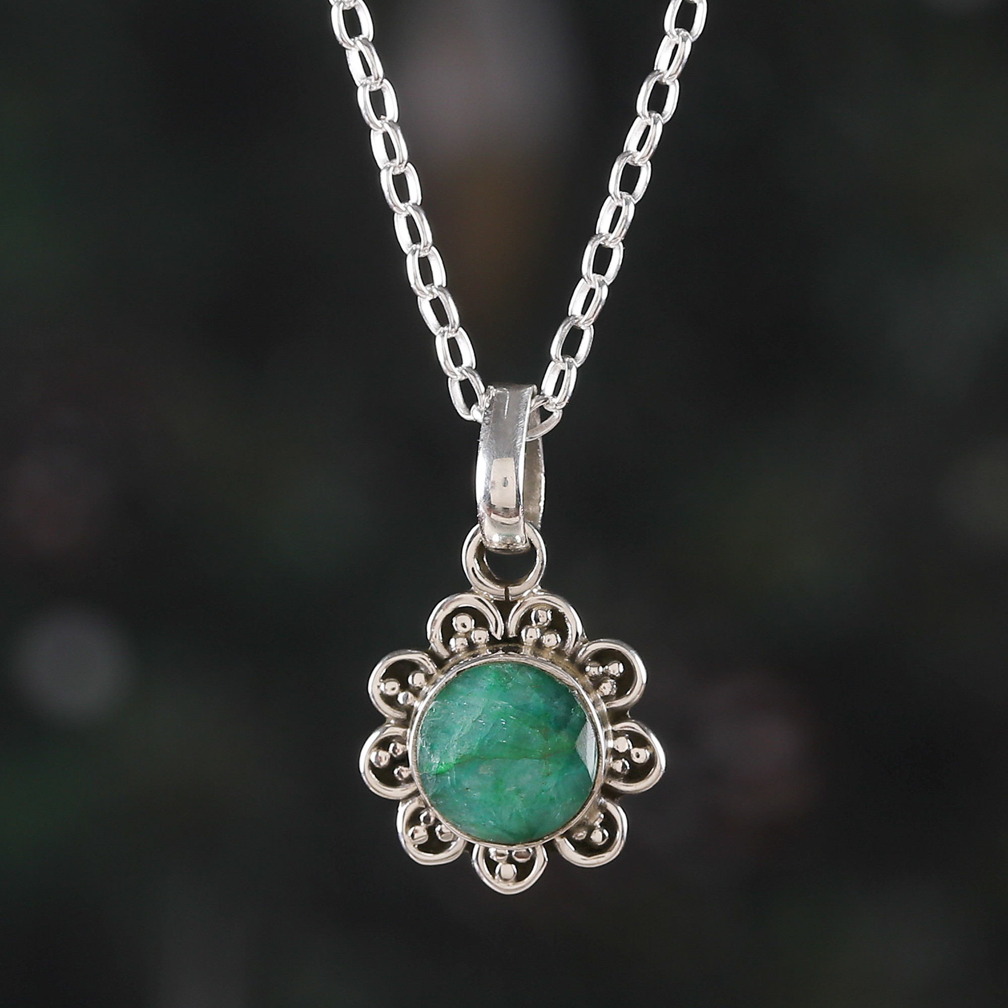 Floral Faceted 2-Carat Emerald Pendant Necklace from India, 'Loyal Flower'
