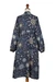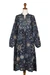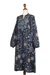 Floral-Patterned Embroidered Blue 100% Rayon A-Lined Dress, 'Celestial Day'