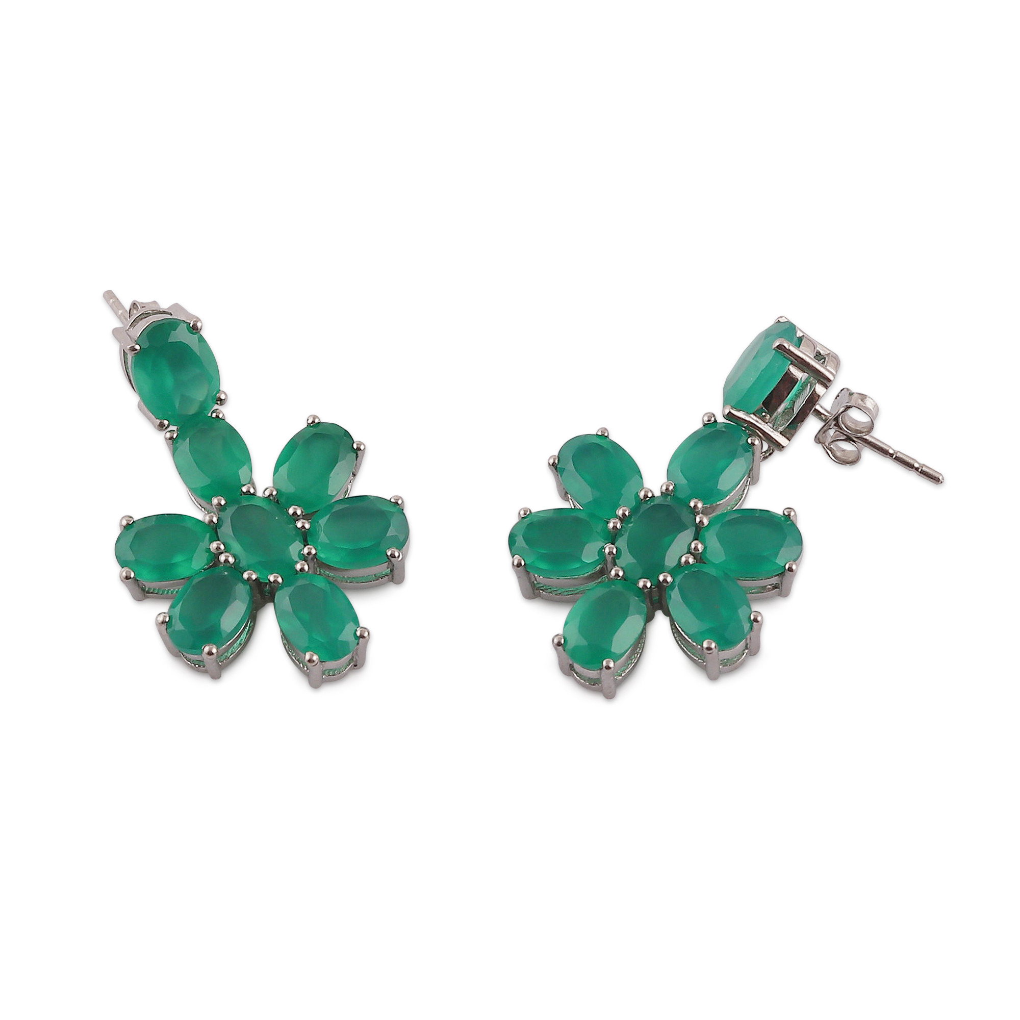 Floral Silver Dangle Earrings with 17-Carat Green Onyx Gems, 'Green Petals in Love'