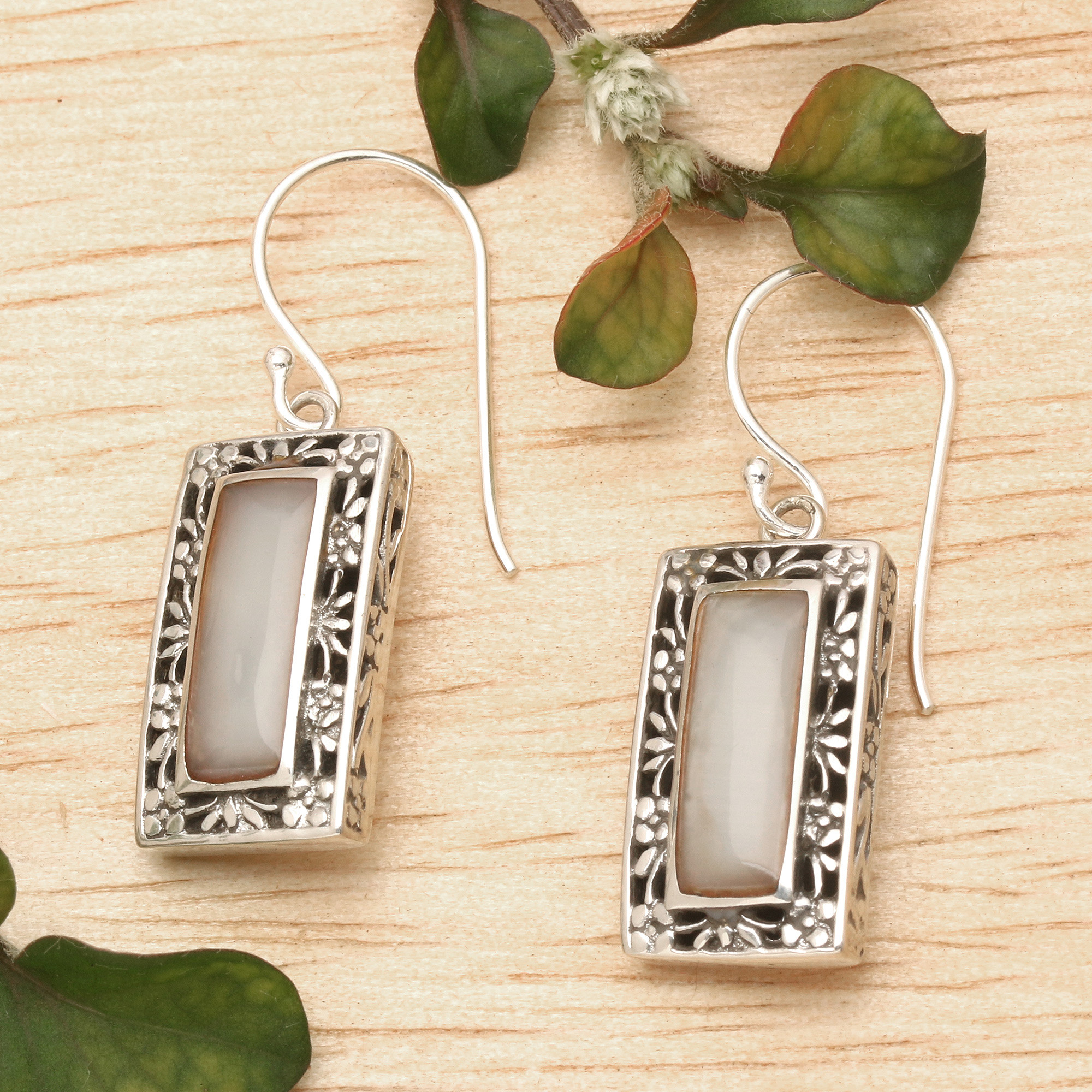 A mirror can reflect your spirit, but—in Made Mustika's newest design—it becomes a portal to a fantastic world. The Balinese artisan uses sterling silver to create these rectangular dangle earrings, whose polished structure features charming floral details and a beautiful resin work in bright hues, symbolizing dreams.
