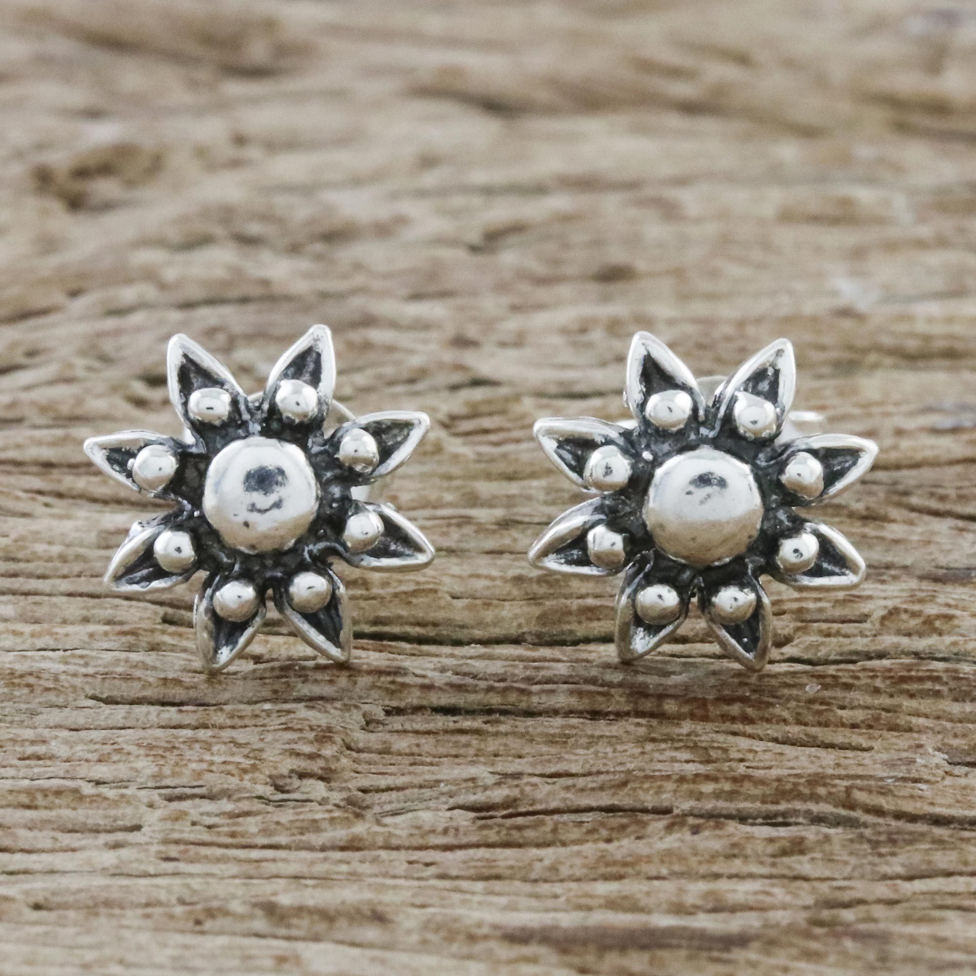 Floral Sterling Silver Stud Earrings from Thailand, 'Flower Gleam'