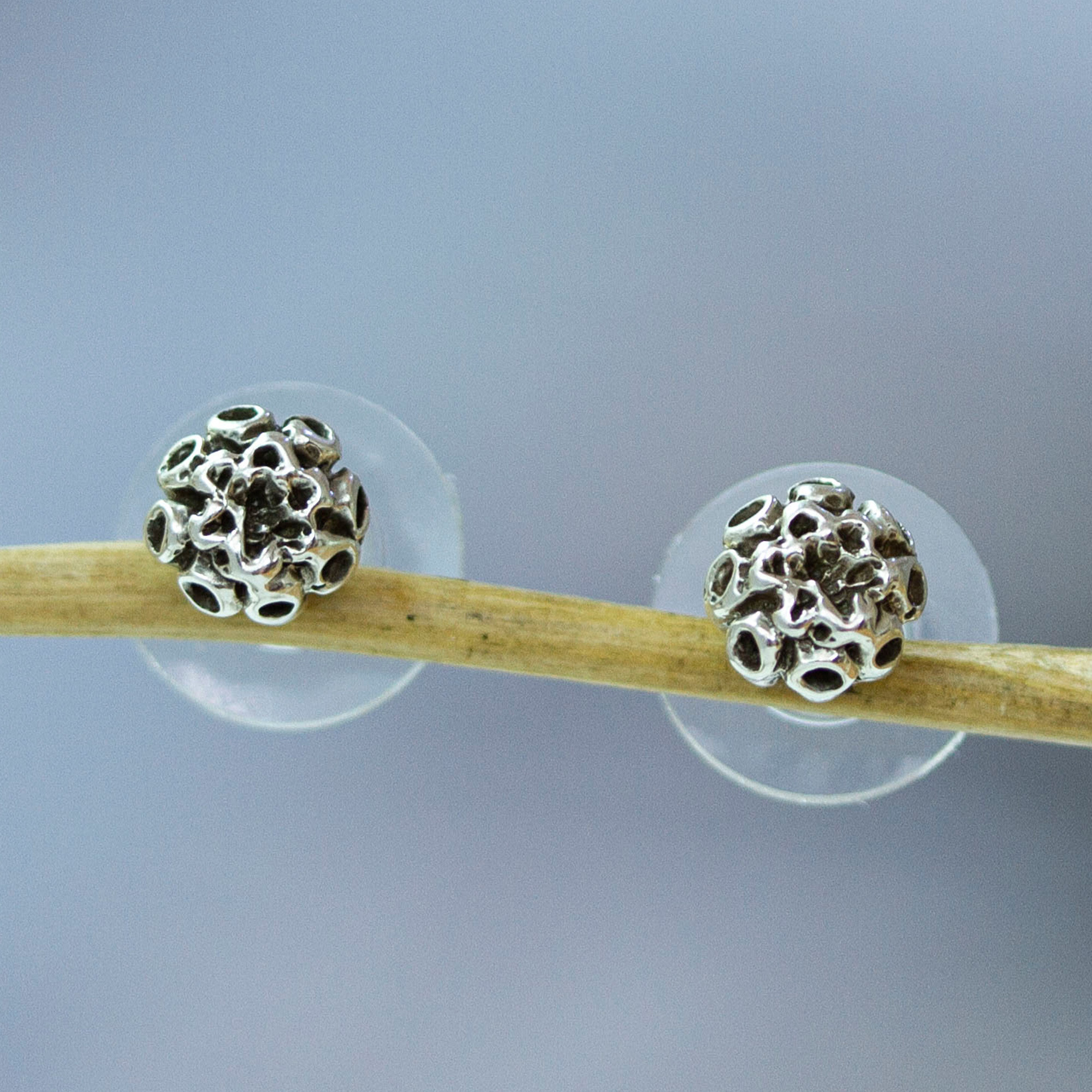 Floral Taxco Sterling Silver Stud Earrings from Mexico, 'Lotus Blossom Pod'