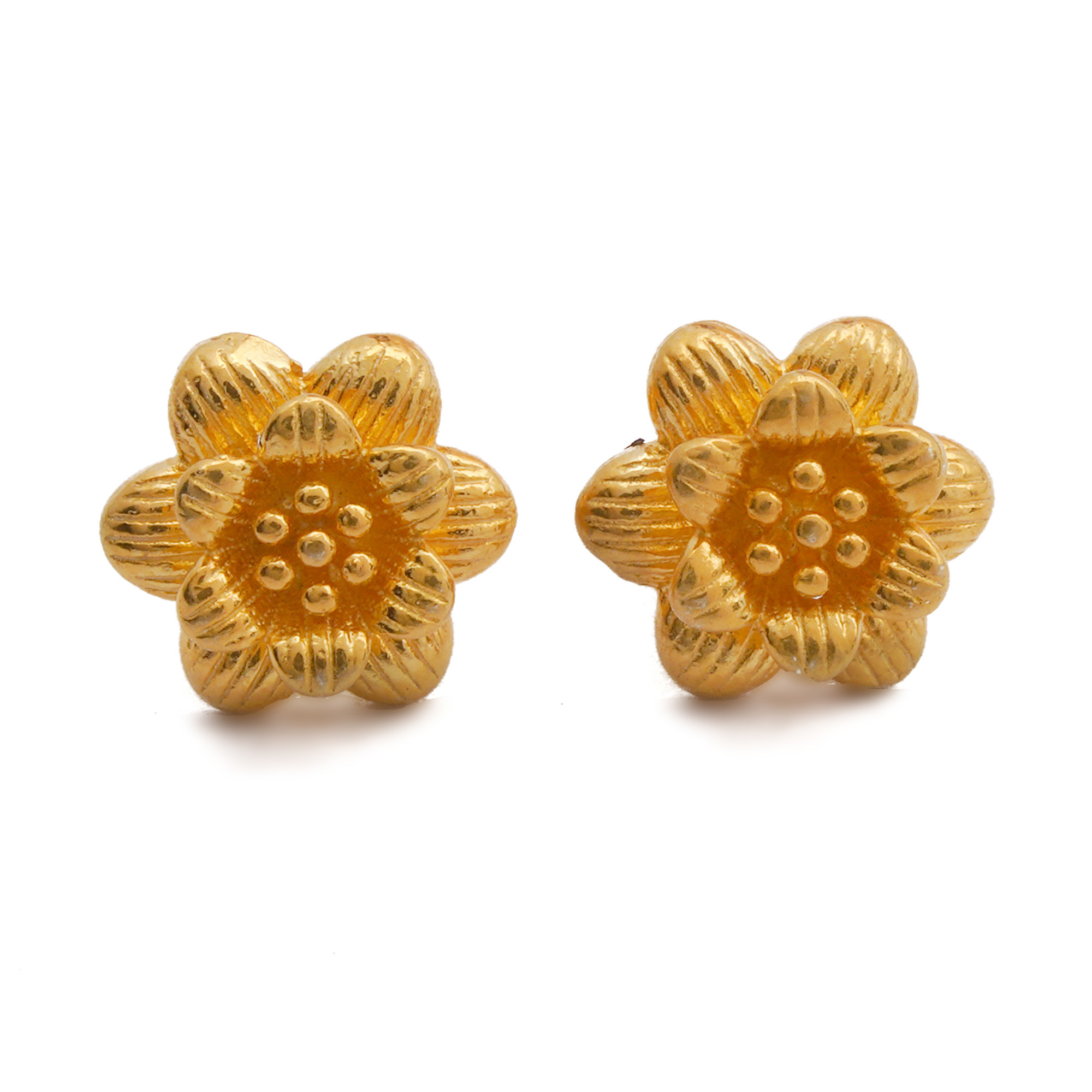 Floral Textured-Finished 18k Gold-Plated Stud Earrings, 'Morning Freesia'