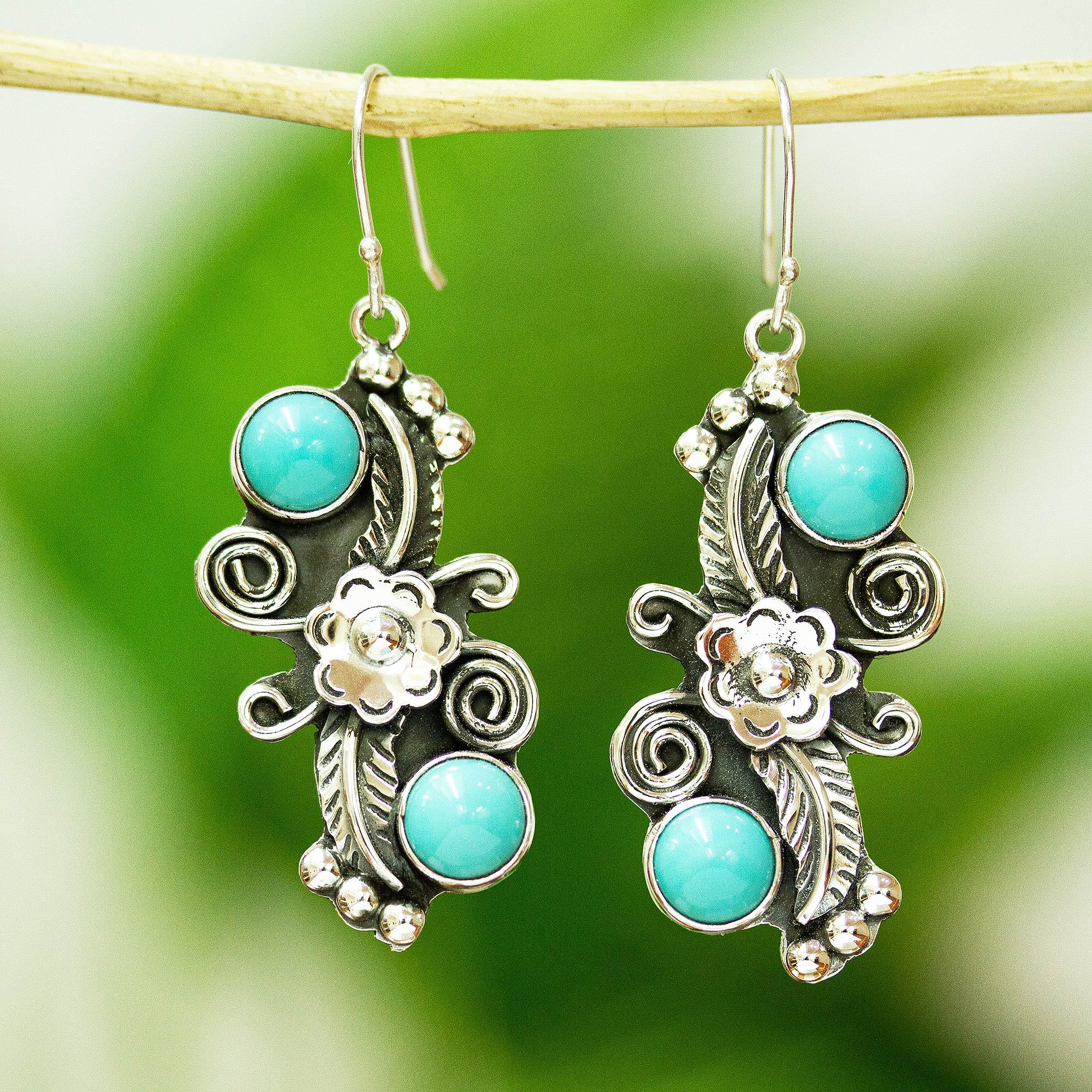 Floral Turquoise Earrings, 'Traditional Blooms'