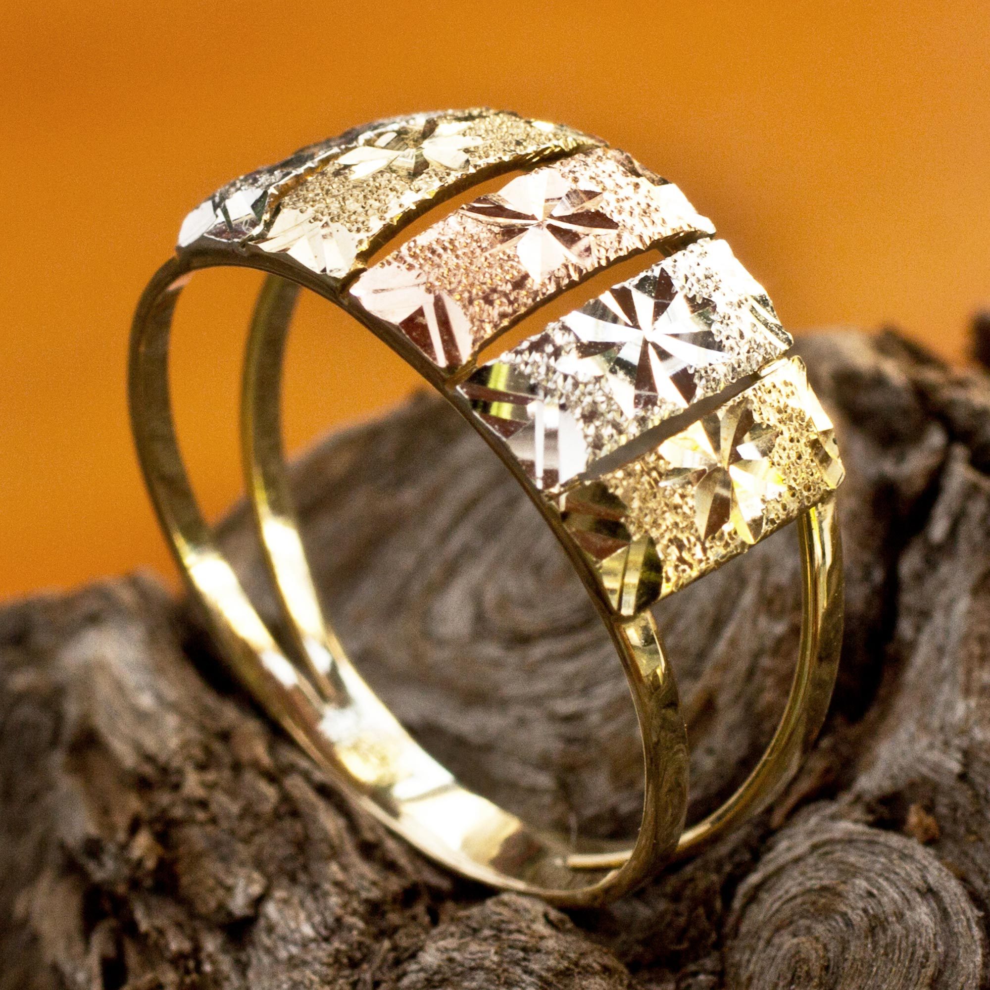Flowers align in the fabulous design of this cocktail ring from the Biason Family of Brazil. The stunning ring is crafted in yellow, rose, and white 10k gold featuring diamond cuts and sandblasted contrasts for a great visual effect.