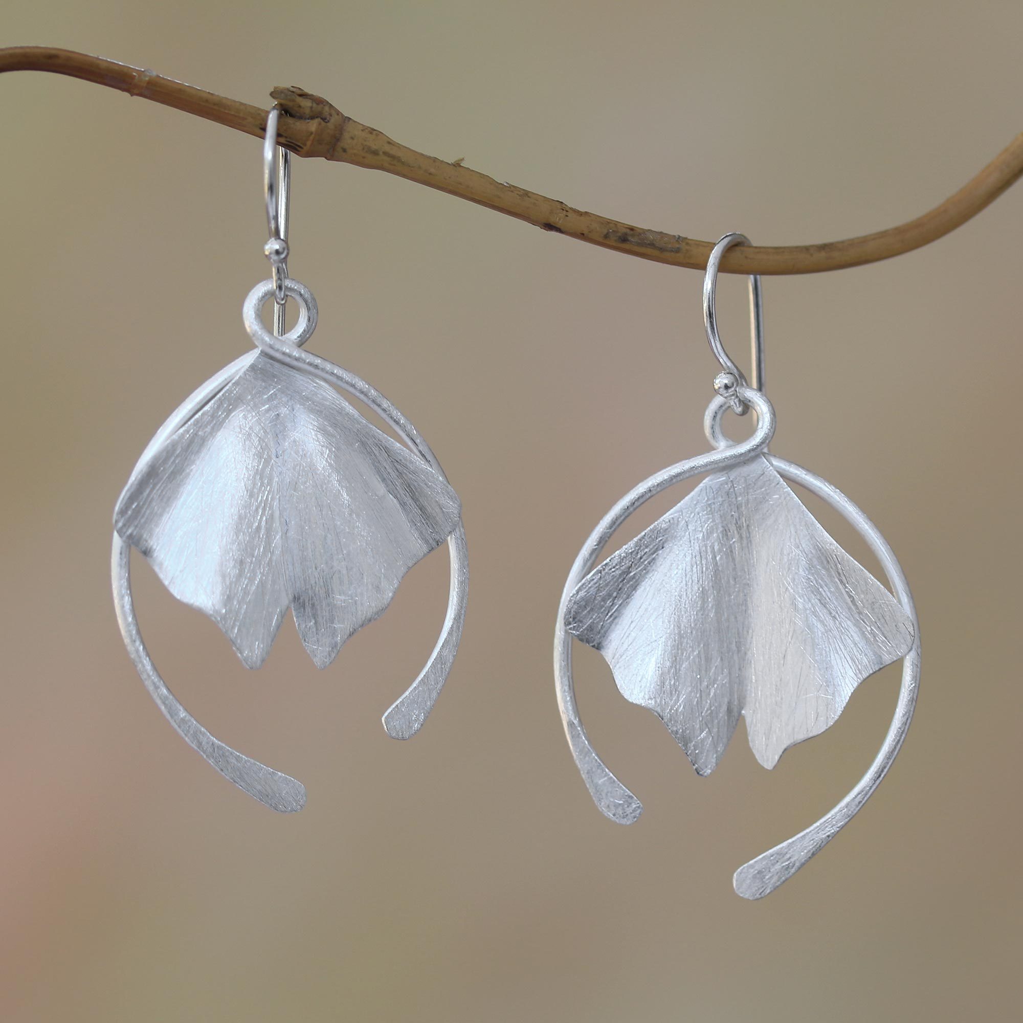 Accentuated by a brushed-satin finish, two lovely petals dangle below the ears in this pair of earrings from Bali. Desi Antari designs this wonderful accessory, crafted of sterling silver.
