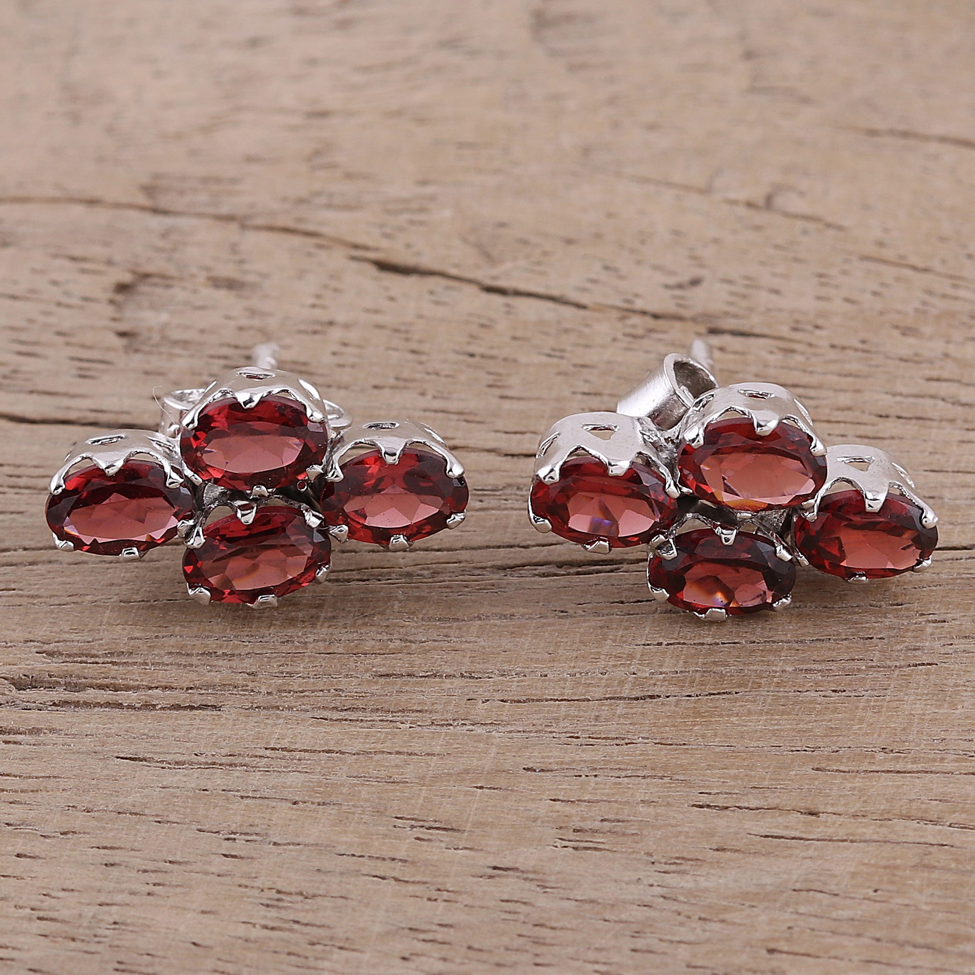 Four Carat Garnet Button Earrings from India, 'Extravagance'