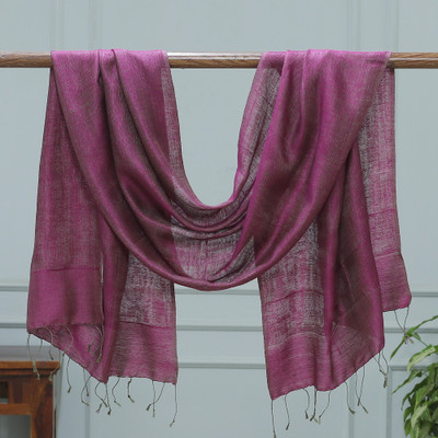 Khitish's shawl shows you two sides of the floral realm through an intense palette. Artisans from the Indian region weave this lovely piece from refined silk yarns, separated into shades of fuchsia for a reversible design with a lightweight drape and cute fringes.