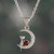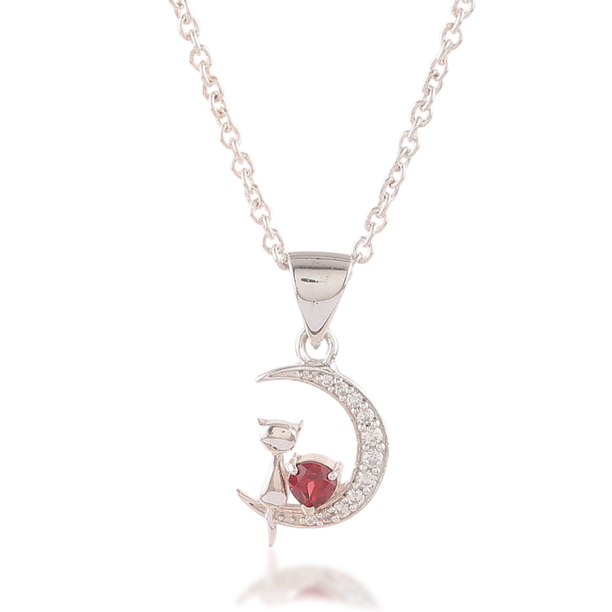 Garnet and Cubic Zirconia Cat-and-Moon Pendant Necklace, 'Feline Moon'