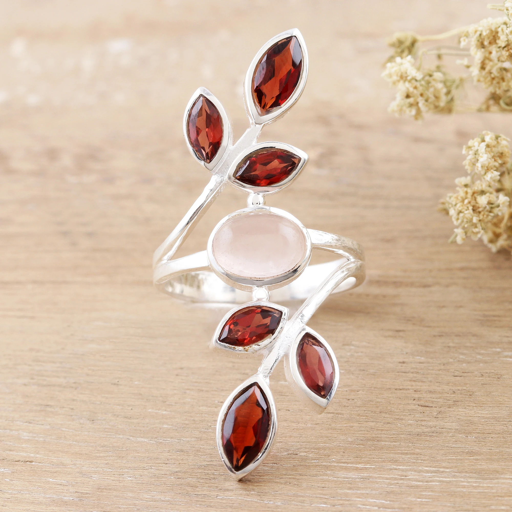 Garnet and Rose Quartz Cocktail Ring, 'Passion Tree'