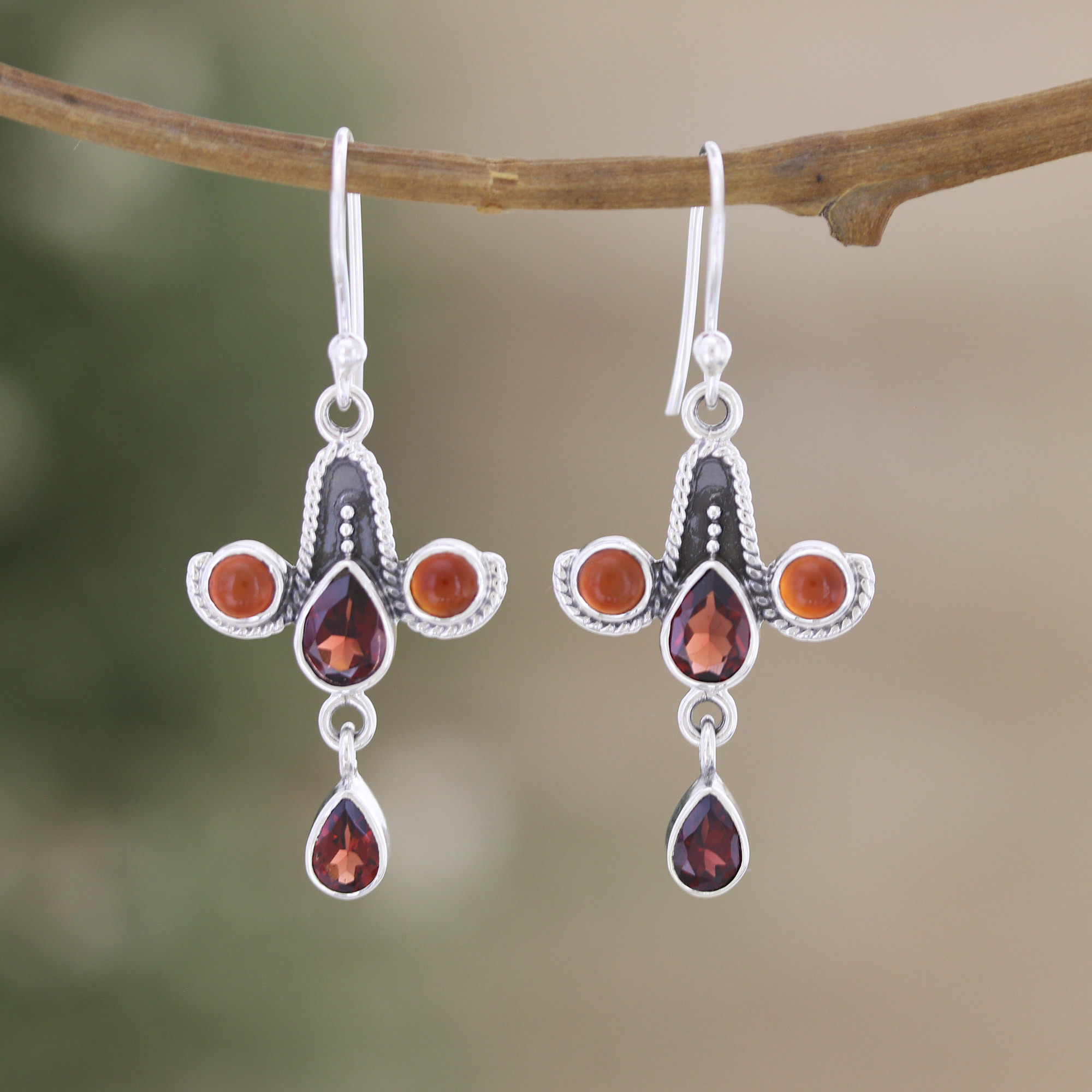 • 925 sterling silver, garnet, carnelian