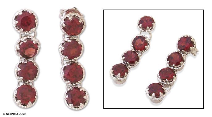 Garnets bring their beauty to these glamorous earrings by Hema. Set in sterling silver, the circular gems distinguish the wearer with their scarlet allure.