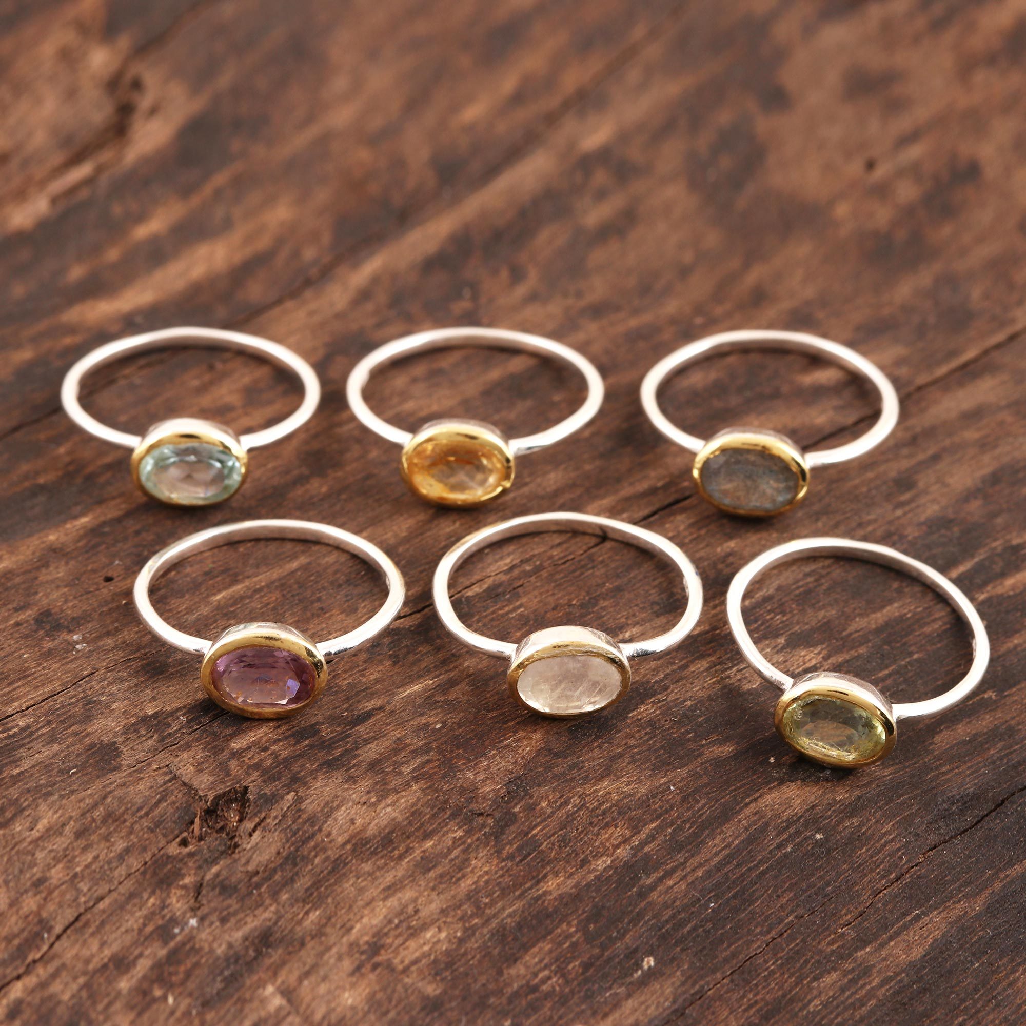 Gemstone Solitaire Rings from India (Set of 6), 'Sparkling Sextet'