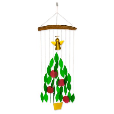 Glass and Driftwood Angel Christmas Tree Windchime, 'Angelic Melody'