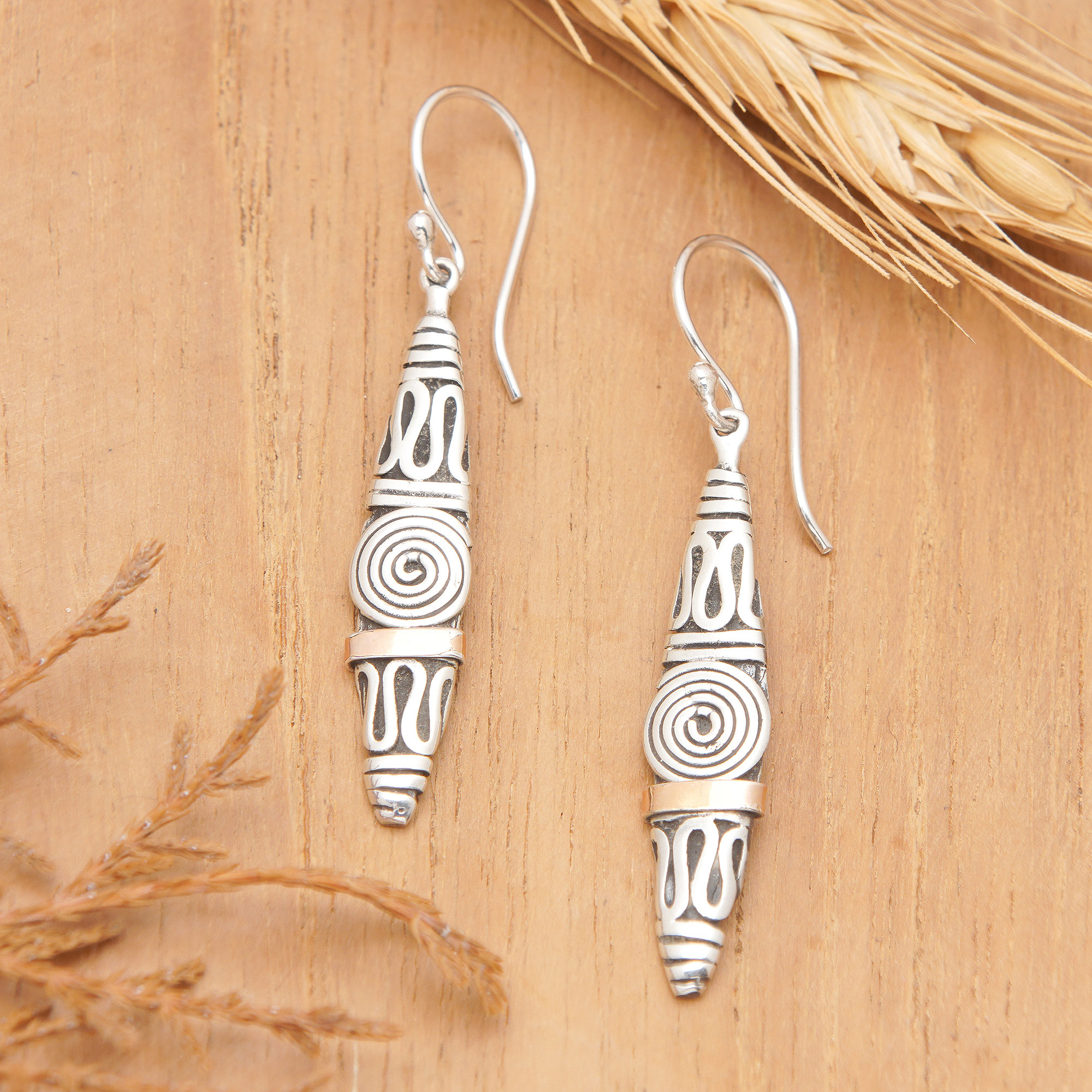 Gold Accent Sterling Silver Dangle Earrings from Indonesia, 'Spiral Dreams'