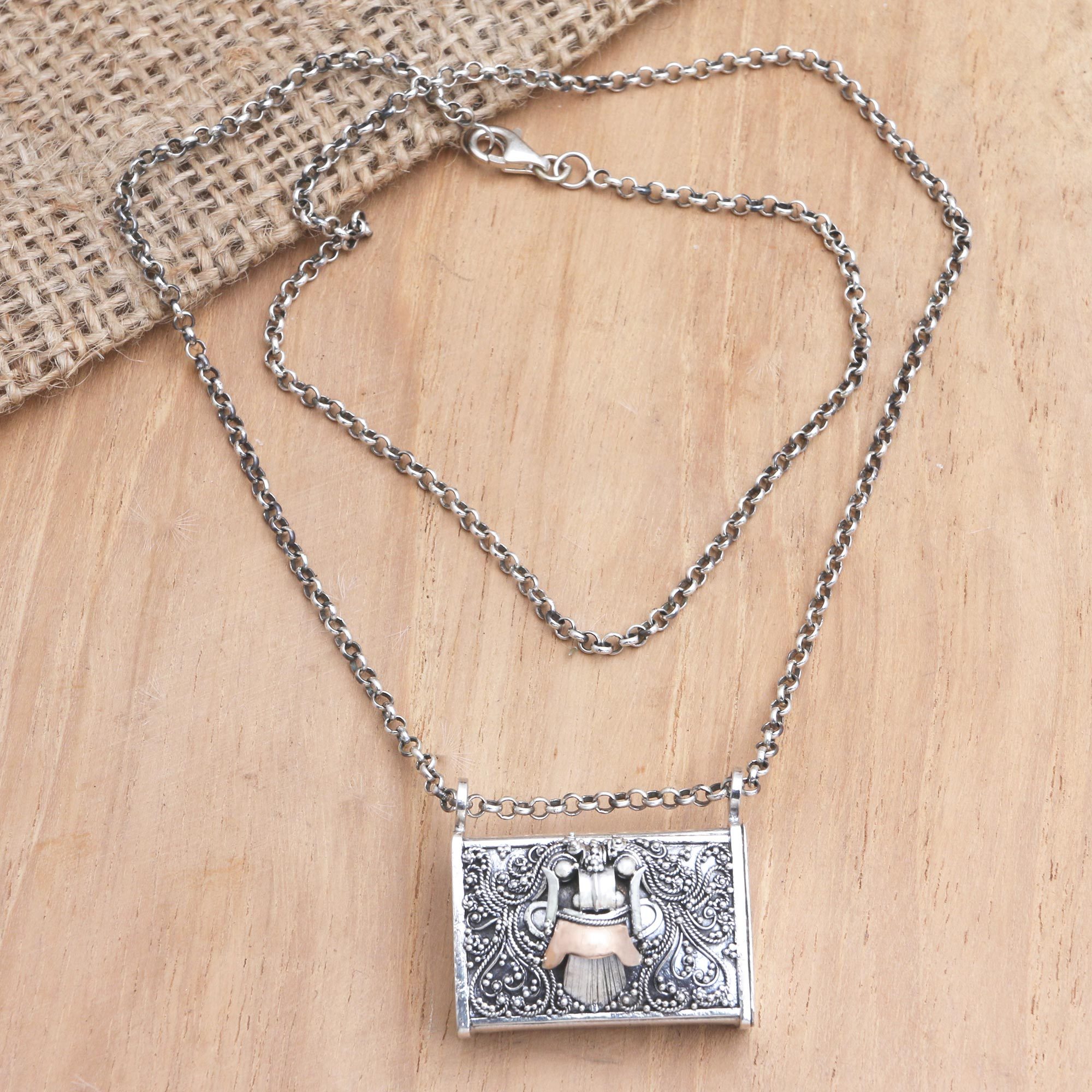 Gold-Accented Sterling Silver Pendant Necklace, 'Eastern Myth'