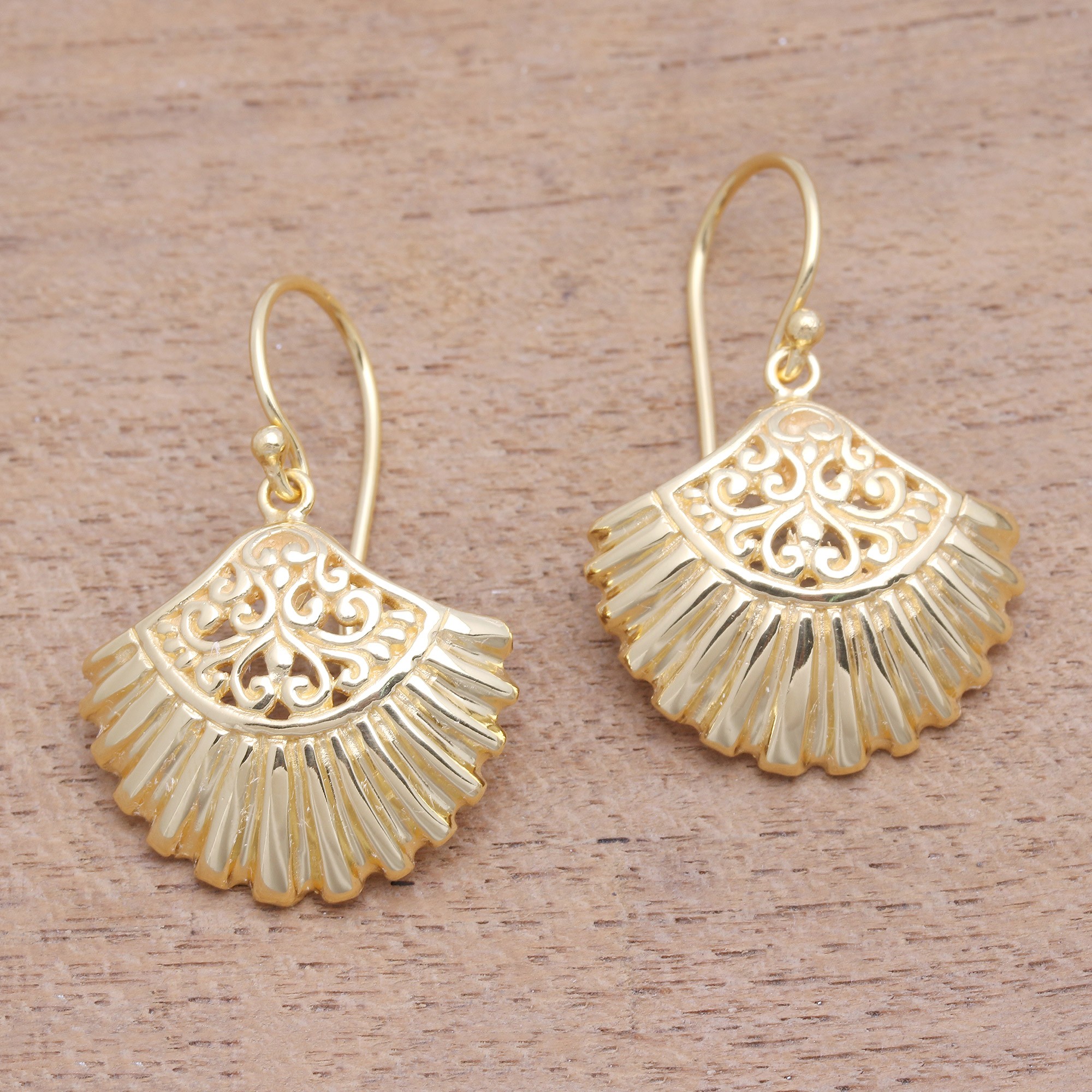 Gold Plated Sterling Silver Clam Shell Dangle Earrings, 'Gleaming Clam Shells'