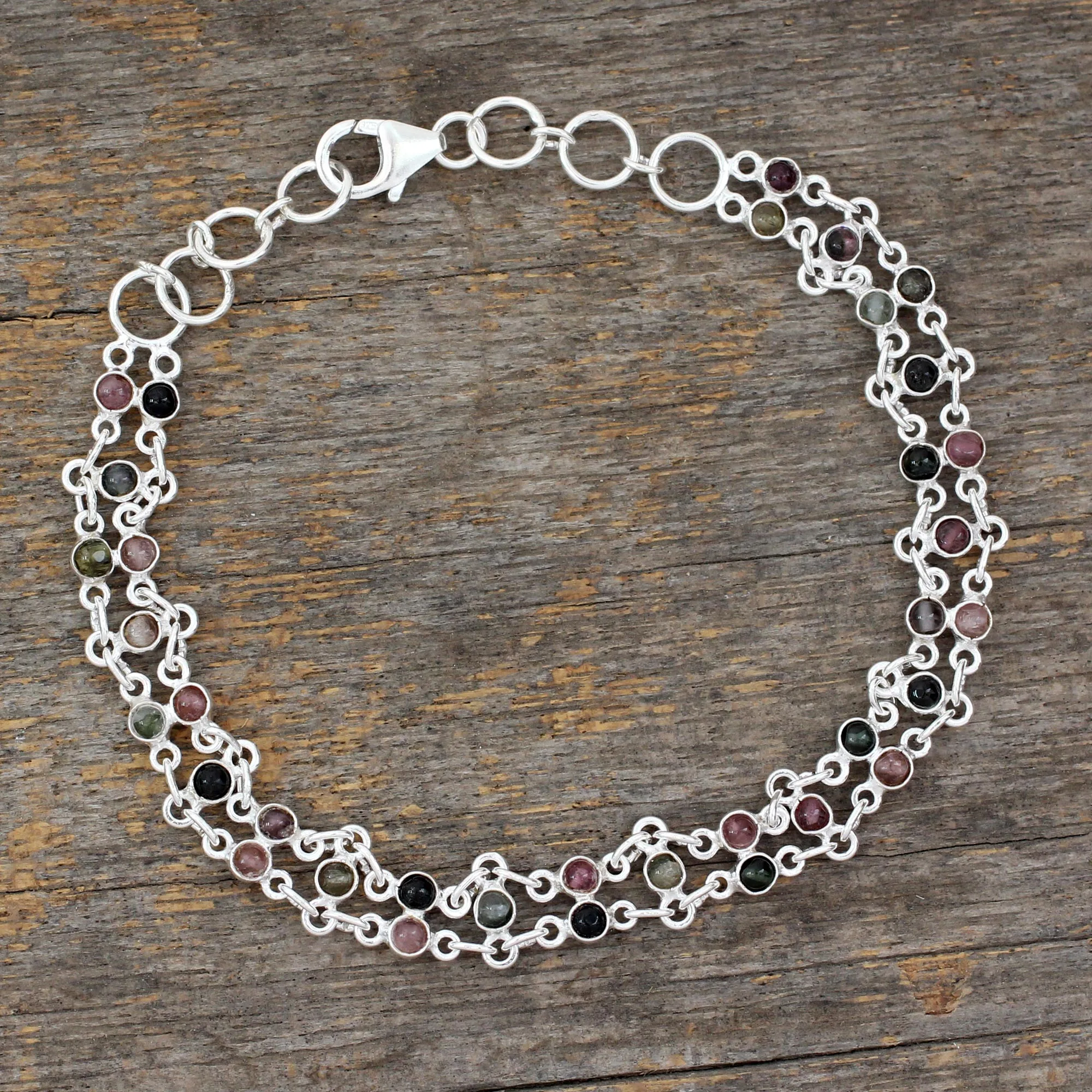 Accessorize your new outfits with this gorgeous sterling silver bracelet studded with elegant tourmaline stones. An exclusive from Bhavesh, this bracelet features an expertly-selected palette of warm gems. You will love the understated elegance of this beautiful, sparkling bracelet.
