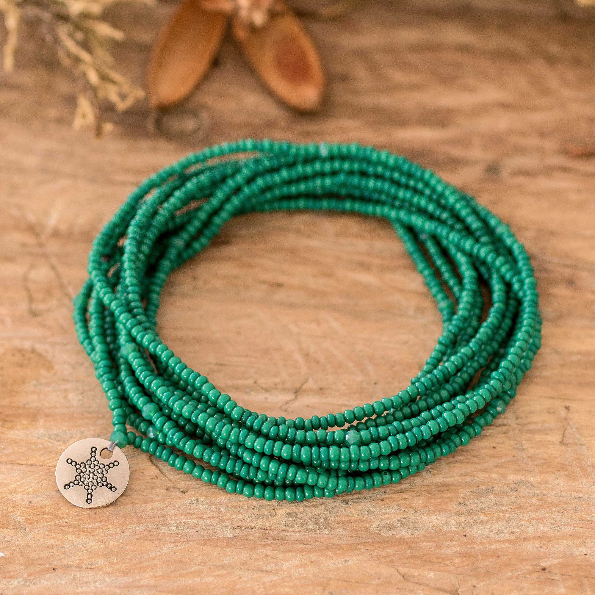 Green Beaded Wrap Bracelet that Doubles as a Strand Necklace, 'Infinite Delight'