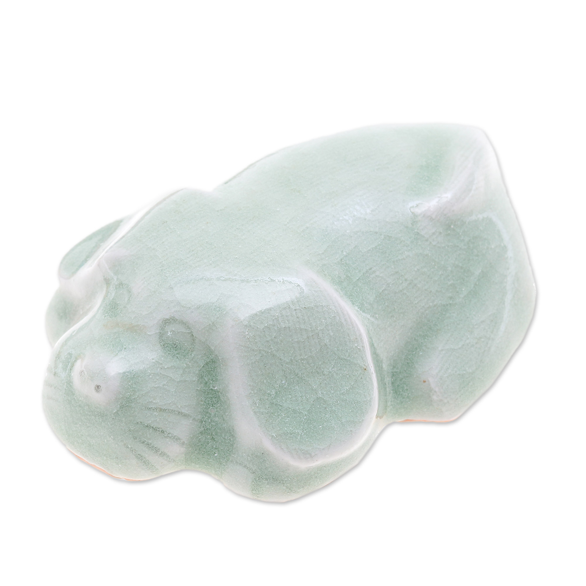 This delightful figurine is created by Penpan in Thailand. The puppy is crafted in the traditional style of celadon ceramics, with its characteristic crackled glaze in cool green.