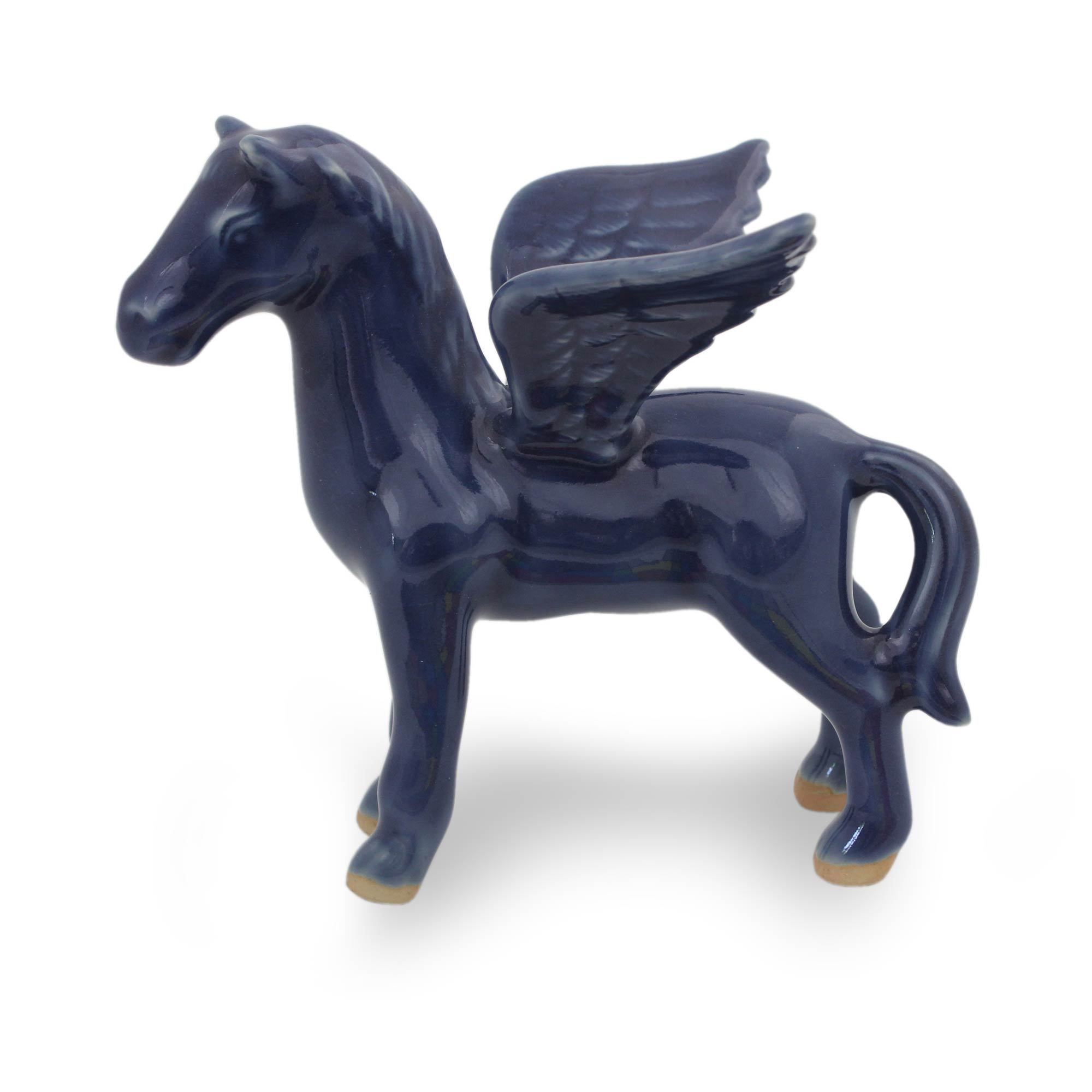 Green Celadon Winged Horse Figurine, 'Blue Pegasus'