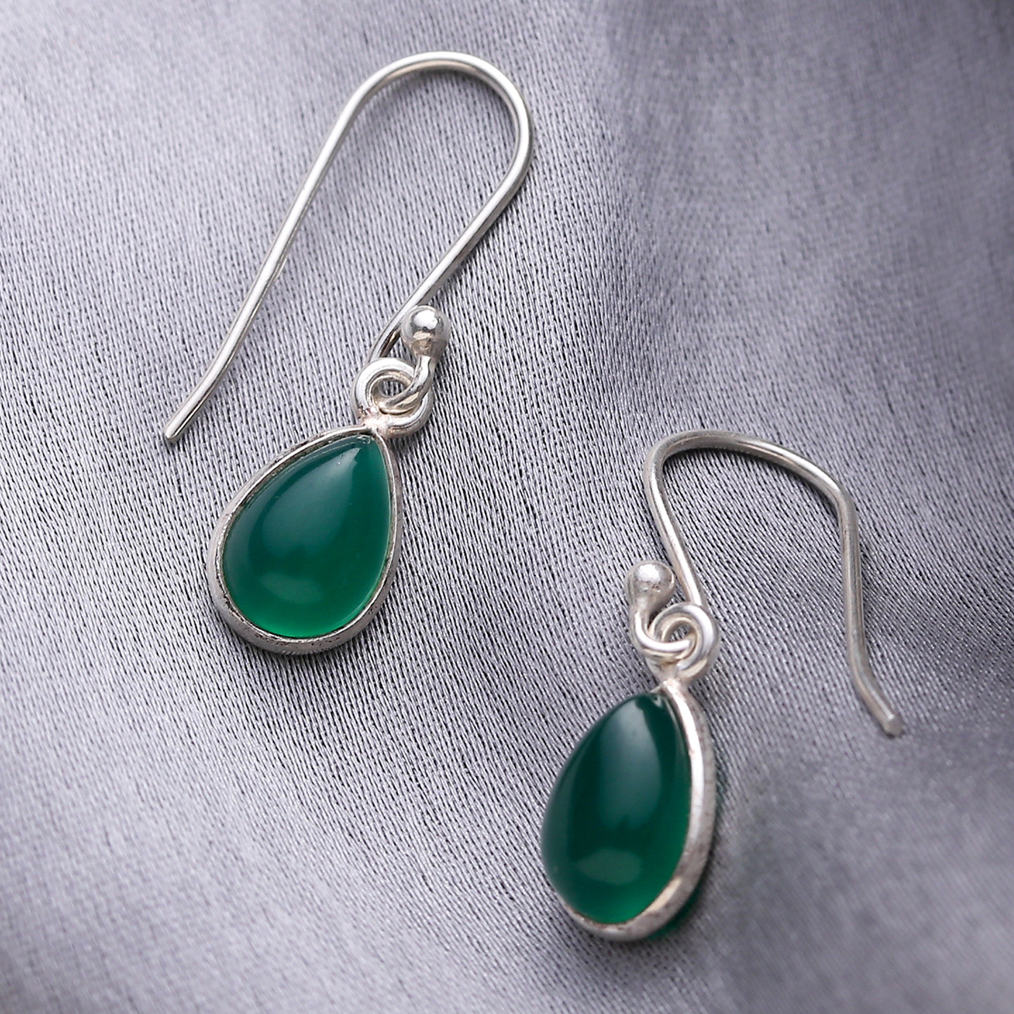 Green Onyx and Sterling Silver Teardrop Dangle Earrings, 'Gentle Tear in Green'