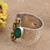 A golden-hued brass floral accent captures attention in this stylish cocktail ring designed by India's Neetu Barathi. The vibrant green onyx stone, along with the embossed leaf-themed patterns adorning the band, draws the eye in this luxurious accessory that is sure to become a star in your collection.
