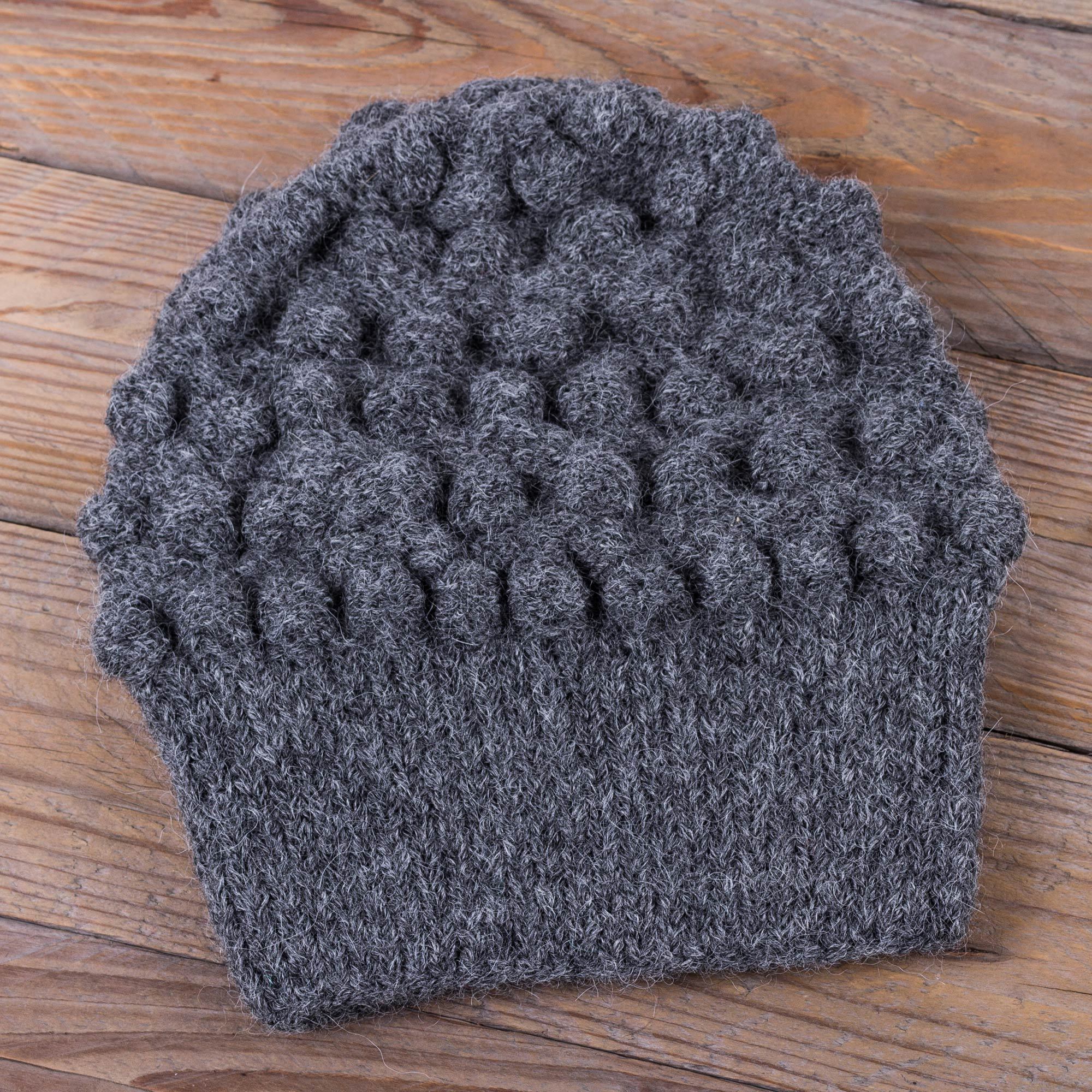 Grey Alpaca Hat Original Design Knit by Hand in Peru, 'Grey Bubbles'