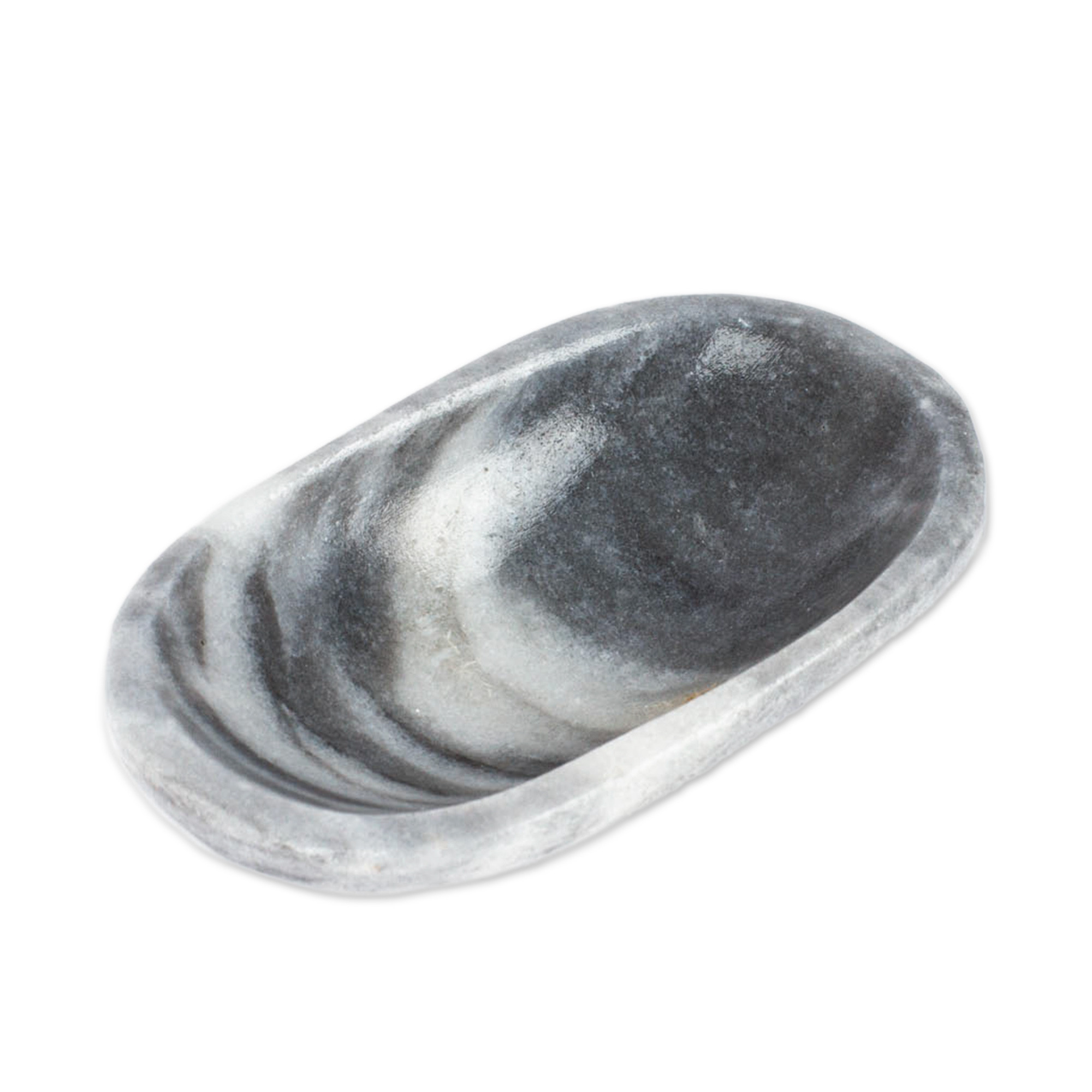 Grey and White Natural Marble Catchall Hand-Carved in Mexico, 'Grey Finesse'