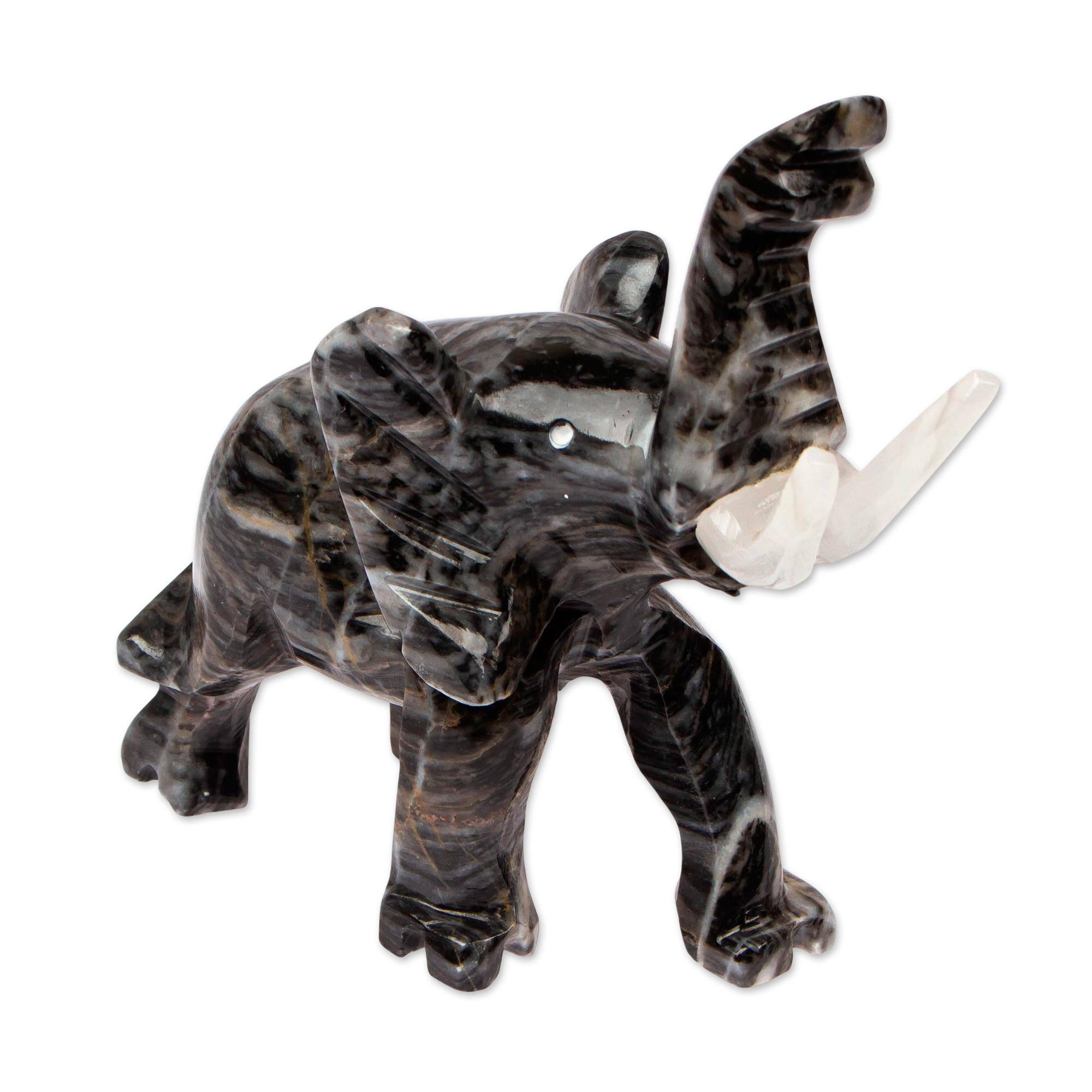 Grey Marble Elephant Sculpture for Tabletop Desk Bookshelf, 'Grey Trunk Charm'