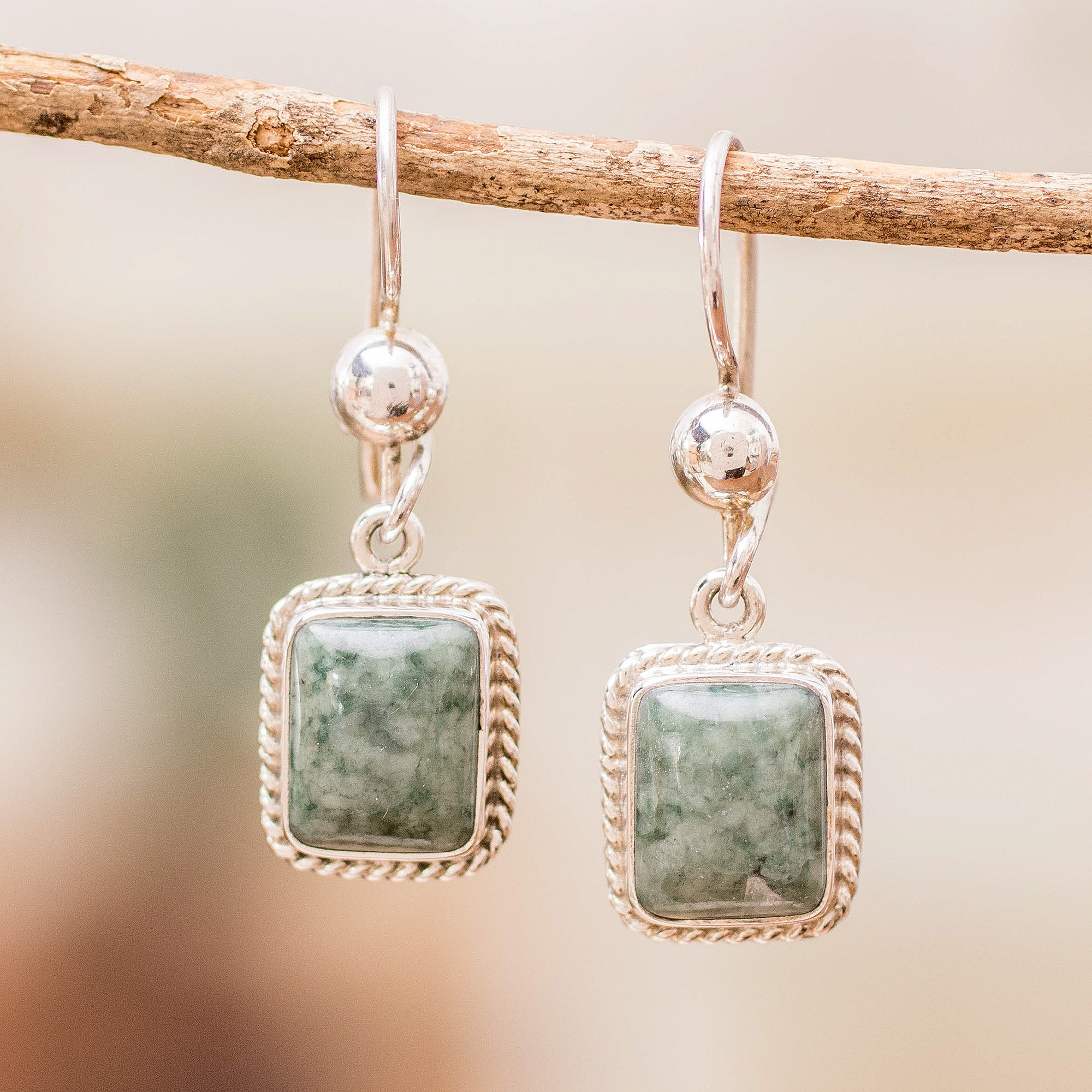 Guatemalan Green Jade Artisan Crafted Earrings, 'Life Divine'